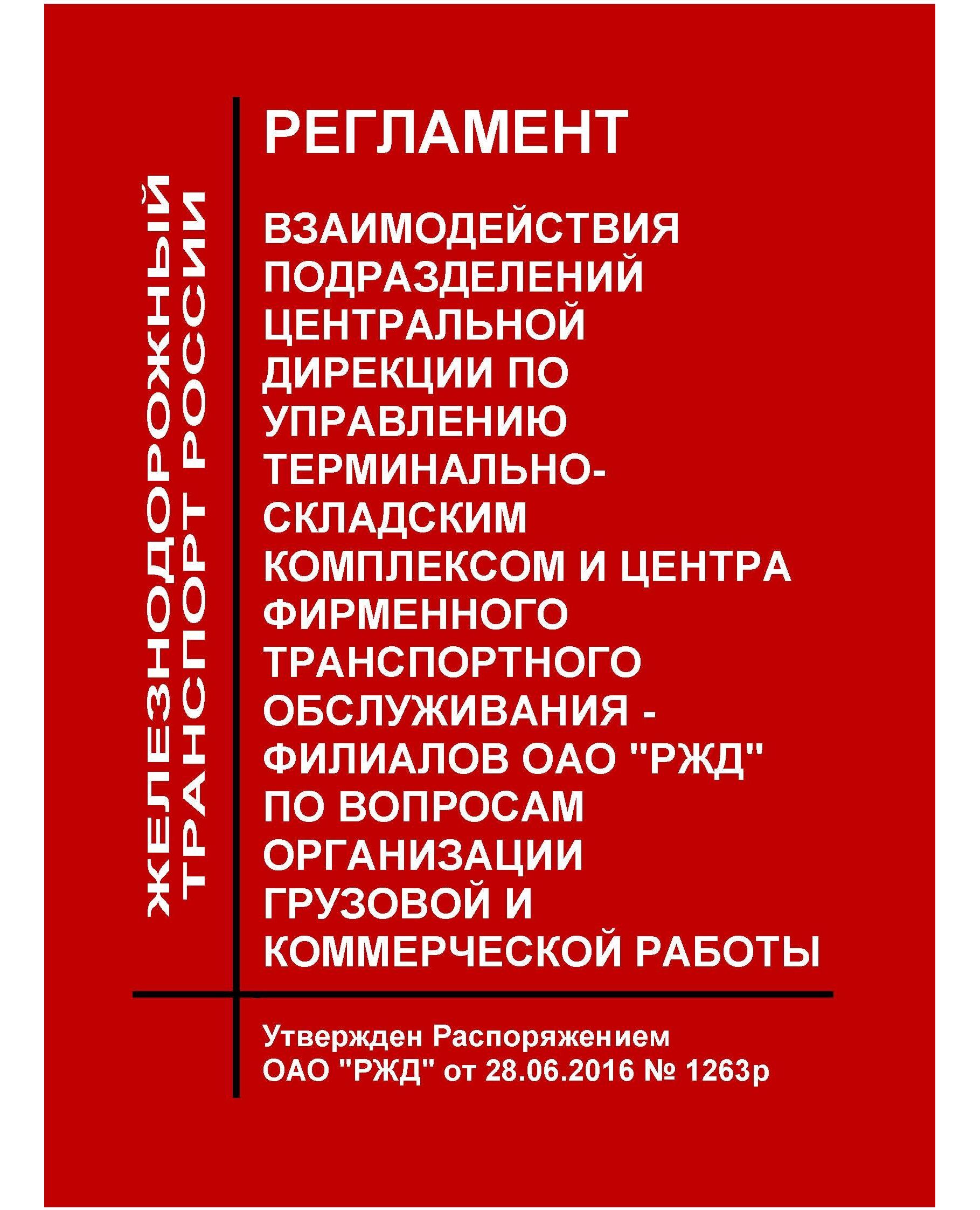Регламент определяет порядок взаимодействия подразделений Центральной дирекции по управлению терминально-складским комплексом - филиала ОАО "РЖД" и Центра фирменного транспортного обслуживания - филиала ОАО "РЖД" при организации грузовой и коммерческой работы.