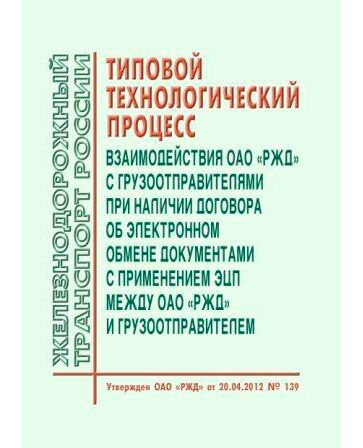 Настоящий Типовой технологический процесс определяет технологию взаимодействия ОАО "РЖД", как перевозчика, с грузоотправителями на станциях отправления при перевозке грузов в прямом железнодорожном сообщении в условиях применения при оформлении перевозок грузов электронных документов (ЭД), подписанных электронной цифровой подписью (ЭЦП). Настоящий Типовой технологический процесс не определяет порядок применения ЭЦП с другими возможными участниками перевозки грузов ОАО "РЖД".