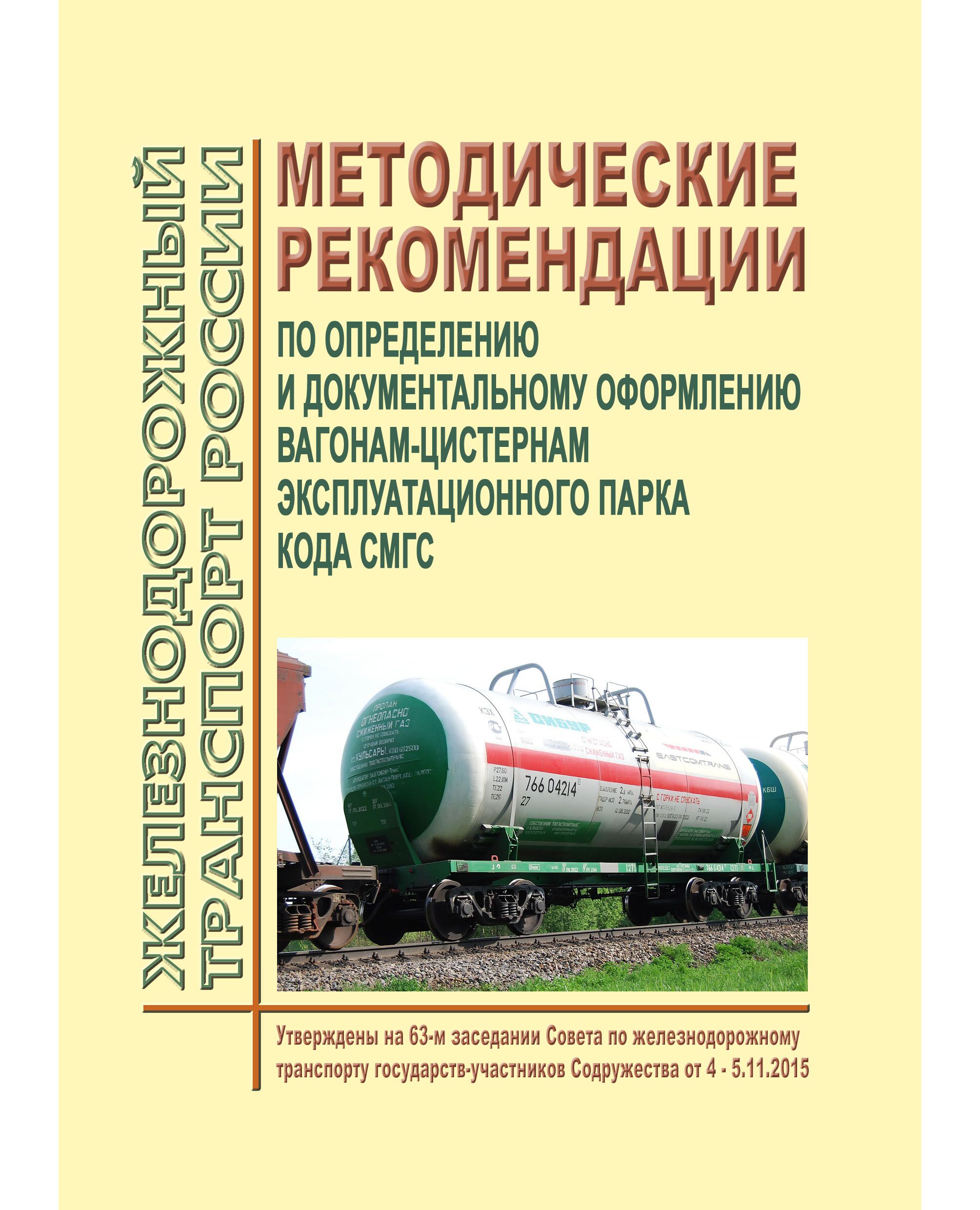 Методические рекомендации по определению и документальному оформлению вагонам-цистернам эксплуатационного парка кода СМГС. Утверждены на 63-м заседании Совета по железнодорожному транспорту государств-участников Содружества от 4 - 5.11.2015