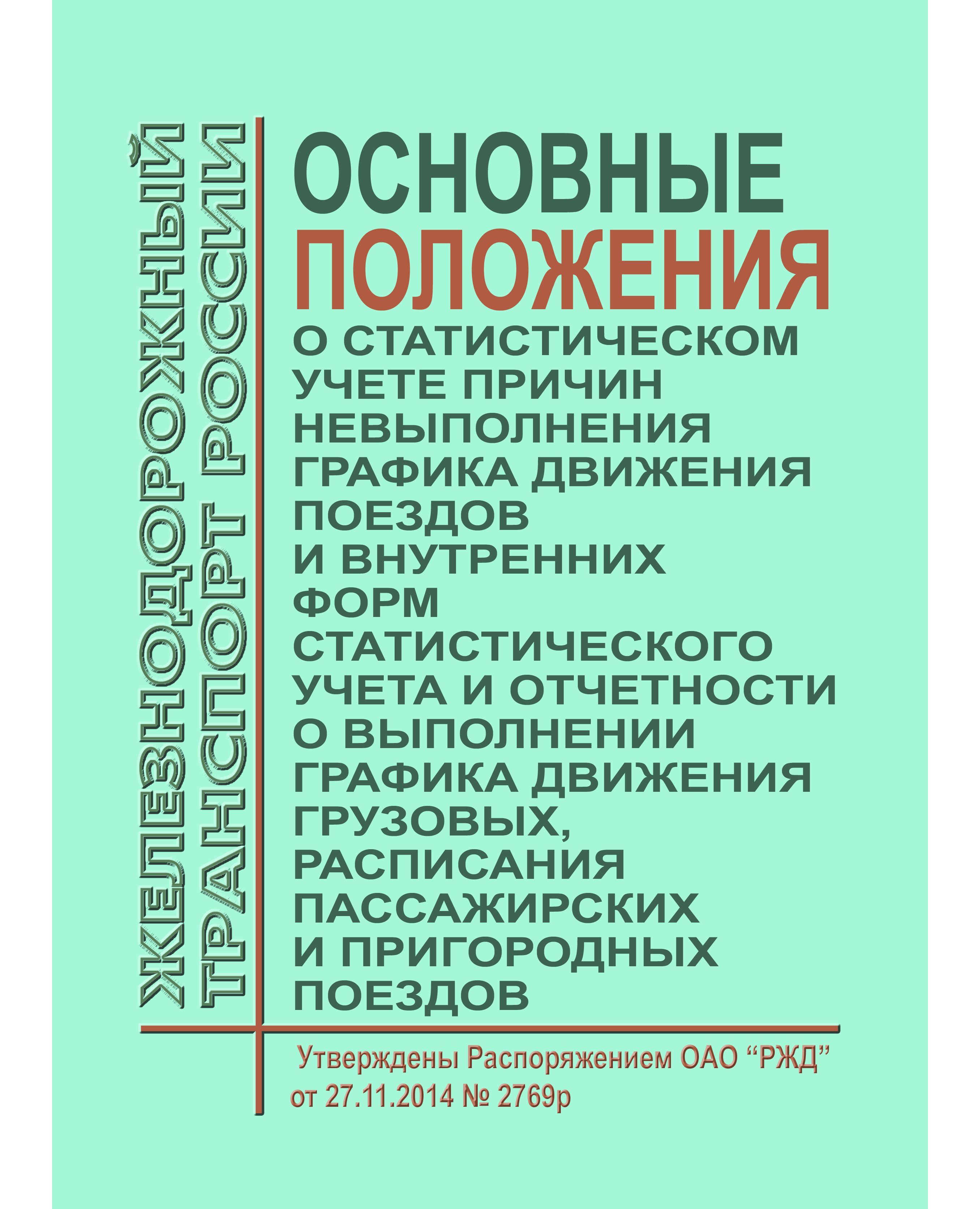 Основные положения о статистическом учете причин невыполнения графика движения поездов и внутренних форм статистического учета и отчетности о выполнении графика движения грузовых, расписания пассажирских и пригородных поездов. Утверждены Распоряжением ОАО "РЖД" от 27.11.2014 № 2769р (в ред. от 28.11.2022)