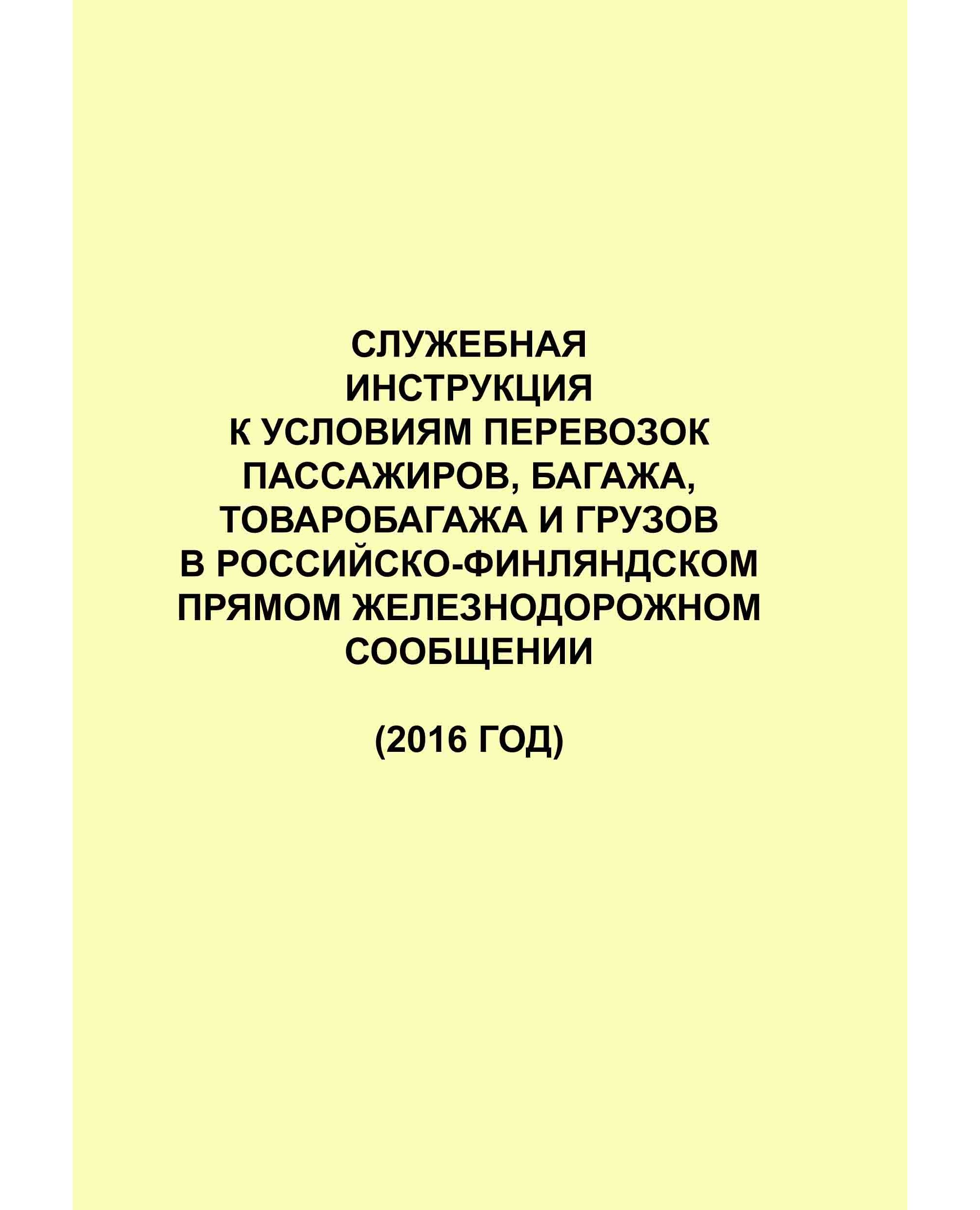 Настоящая Служебная инструкция к Условиям перевозок пассажиров, багажа, товаробагажа и грузов в российско-финляндском прямом железнодорожном сообщении предназначена для выполнения обязанностей, связанных с перевозками пассажиров, багажа, грузов, работниками Открытого акционерного общества "Российские железные дороги" и VR-Group Ltd.