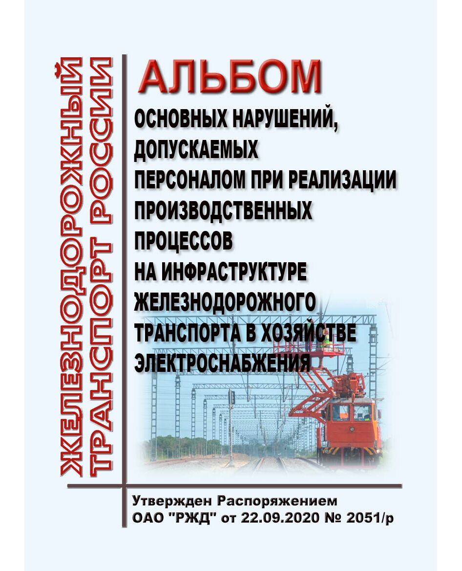 Альбом основных нарушений, допускаемых персоналом при реализации производственных процессов на инфраструктуре железнодорожного транспорта в хозяйстве электроснабжения. Утвержден Распоряжением ОАО "РЖД" от 22.09.2020 № 2051/р