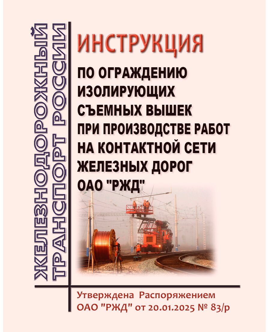 Инструкция устанавливает порядок организации работ под напряжением и со снятием напряжения на контактной сети электрифицированных железнодорожных путей ОАО "РЖД" с изолирующих съемных вышек и с изолирующих навесных стеклопластиковых лестниц,