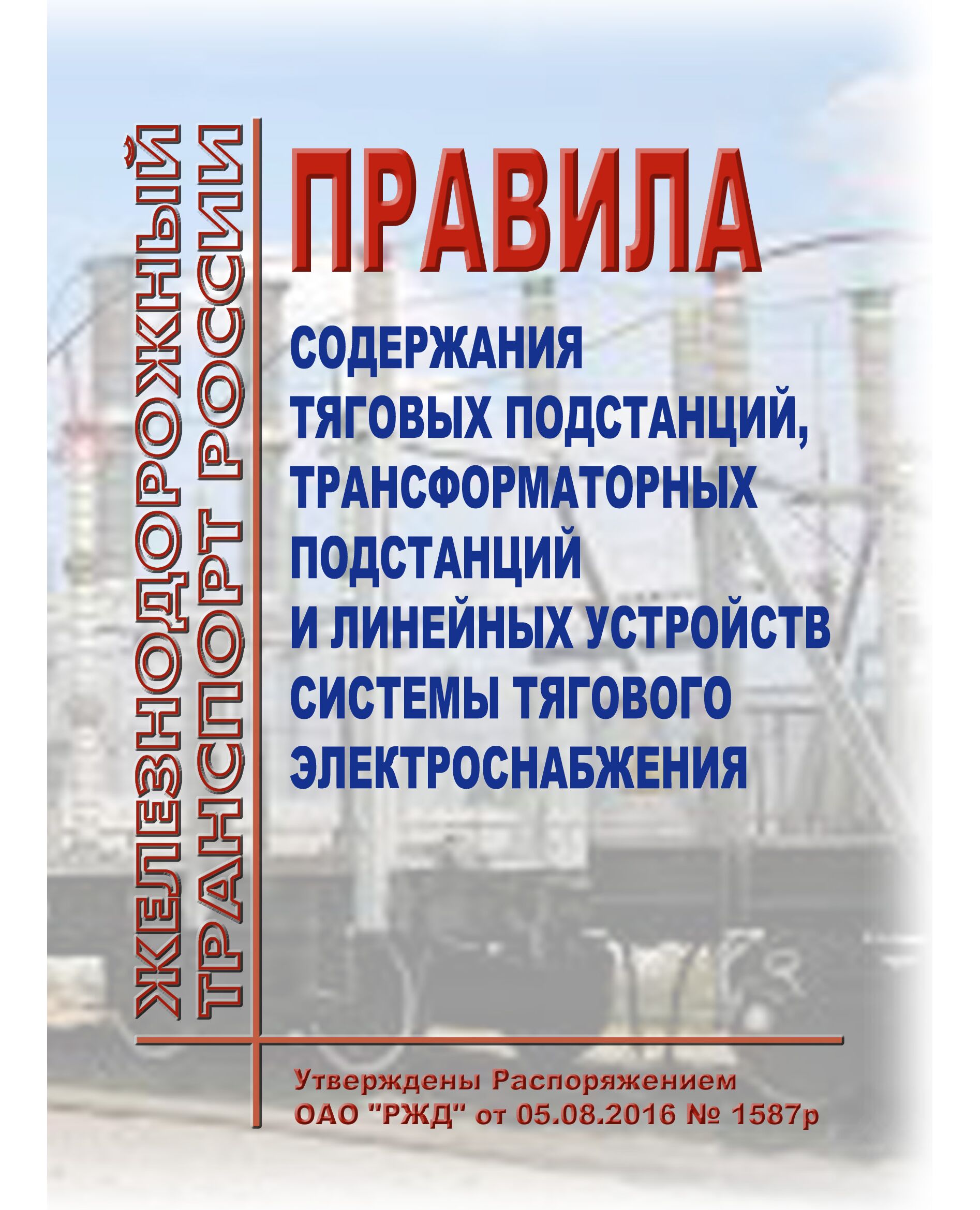 Настоящие правила устанавливают требования к техническому обслуживанию и ремонту тяговых подстанций, трансформаторных подстанций и линейных устройств системы тягового электроснабжения. Правила не распространяются на процессы модернизации и технического перевооружения (обновления) указанных объектов.