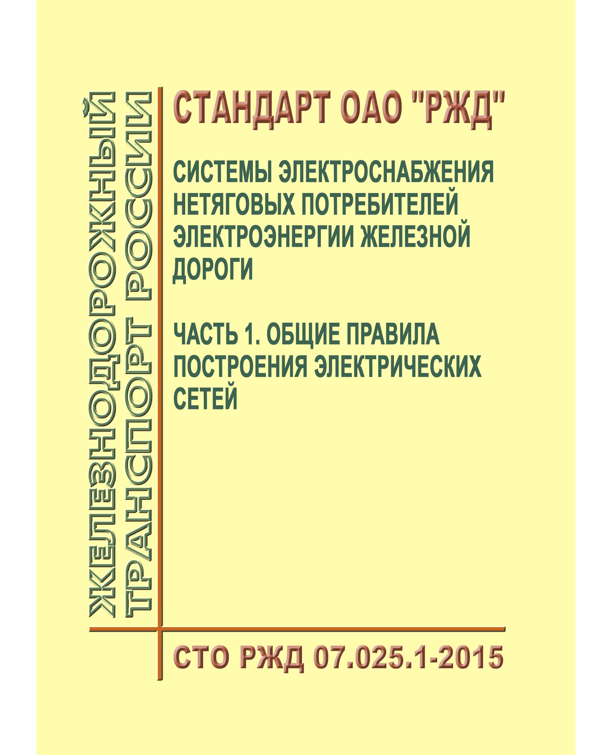 Стандарт ОАО "РЖД". Системы электроснабжения нетяговых потребителей электроэнергии железной дороги. Часть 1. Общие правила построения электрических сетей. СТО РЖД 07.025.1-2015. Утвержден Распоряжением ОАО "РЖД" от 26.02.2016 № 325р
