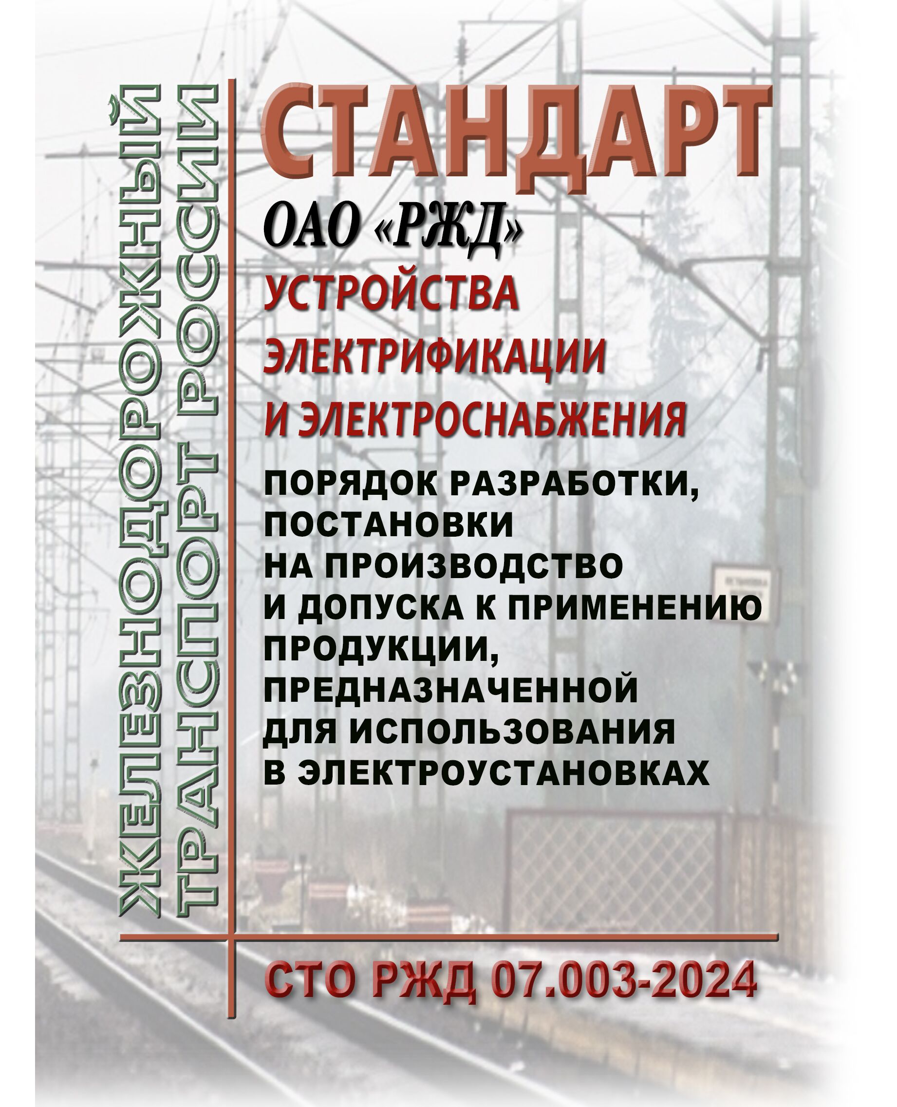 Взамен СТО РЖД 07.003-2018 "Устройства электрификации и электроснабжения. Порядок разработки, постановки на производство и допуска к применению продукции, предназначенной для использования в электроустановках".