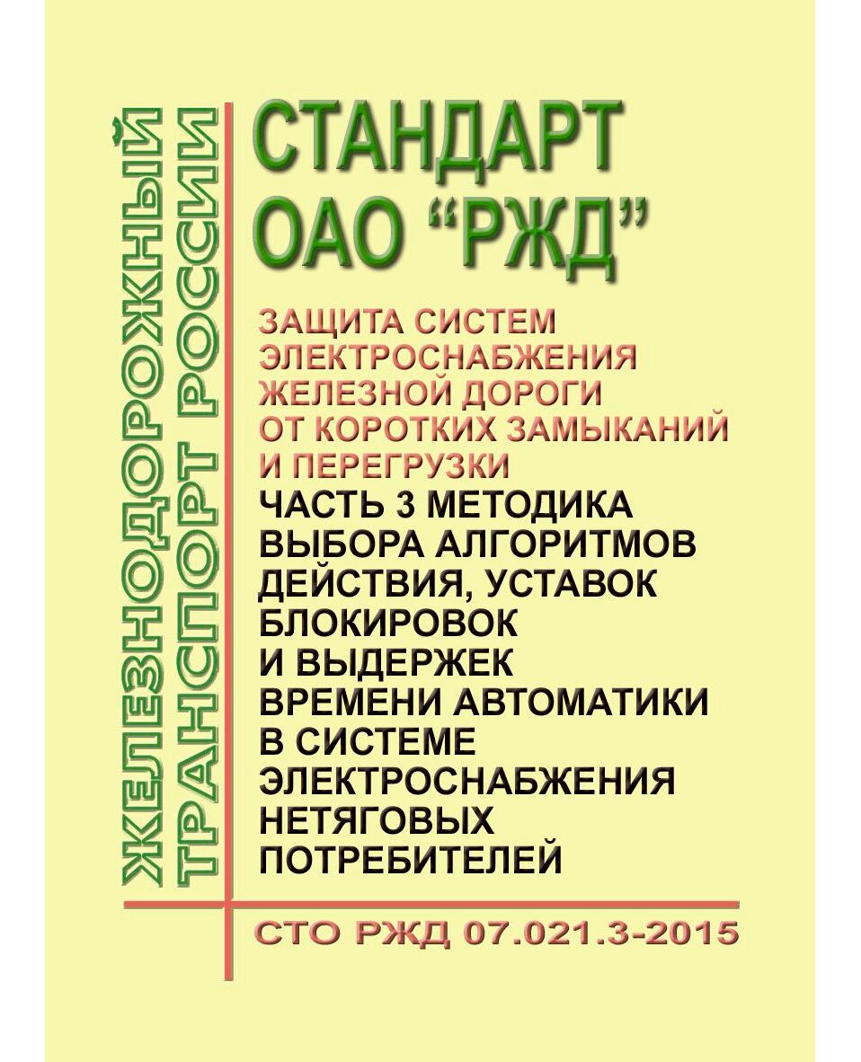 Настоящий стандарт распространяется на вновь сооружаемые и реконструируемые объекты систем железнодорожного электроснабжения и устанавливает методику выбора алгоритмов действия, уставок блокировок и выдержек времени автоматики в системе электроснабжения нетяговых потребителей.
