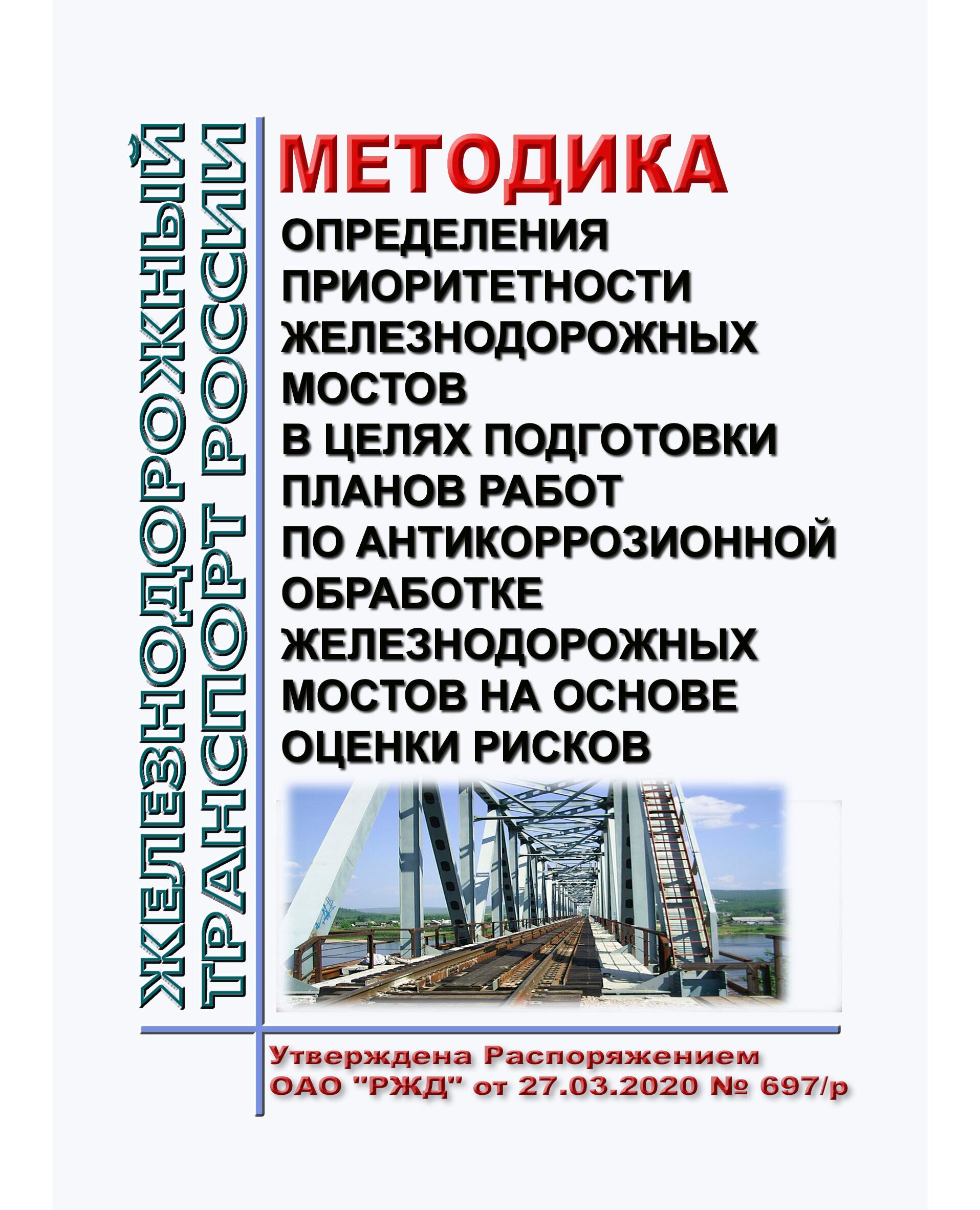 В настоящей Методике определения приоритетности железнодорожных мостов в целях подготовки планов работ по антикоррозионной обработке железнодорожных мостов на основе оценки рисков представлен алгоритм определения очередности проведения работ по антикоррозионной обработке железнодорожных мостов с превышенным нормативным сроком по окраске металлических частей, а также контрольно-оценочные карты для оценки фактического состояния моста.