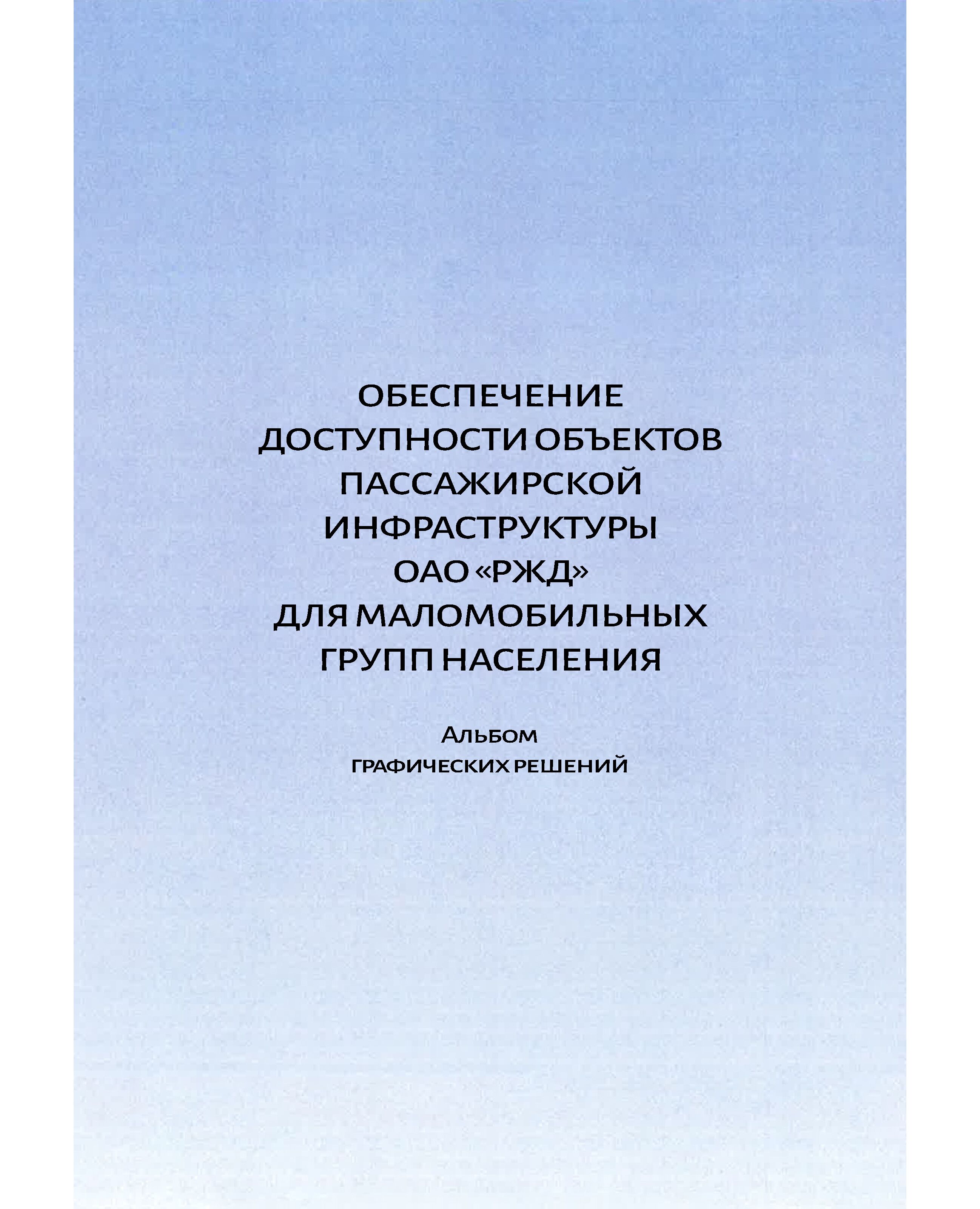 В Альбоме графических решений «Обеспечение доступности объектов пассажирской инфраструктуры ОАО "РЖД" для маломобильных групп населения» даны рекомендации по обустройству основных функциональных зон элементов по обустройству зданий и сооружений с учетом требований нормативных документов, регламентирующих обеспечение условий по обеспечению доступности для маломобильных групп населения объектов пассажирской инфраструктуры железнодорожного транспорта