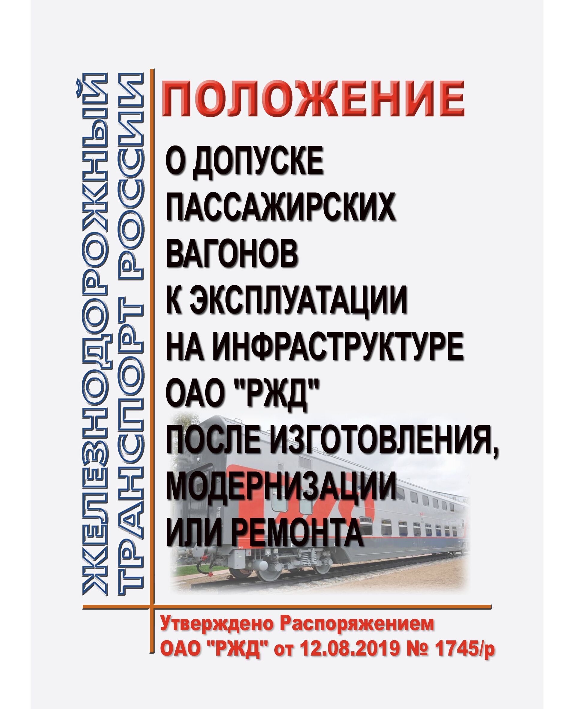 Положение устанавливает порядок допуска пассажирских вагонов локомотивной тяги к эксплуатации на инфраструктуре ОАО "РЖД" после изготовления, модернизации или ремонта.