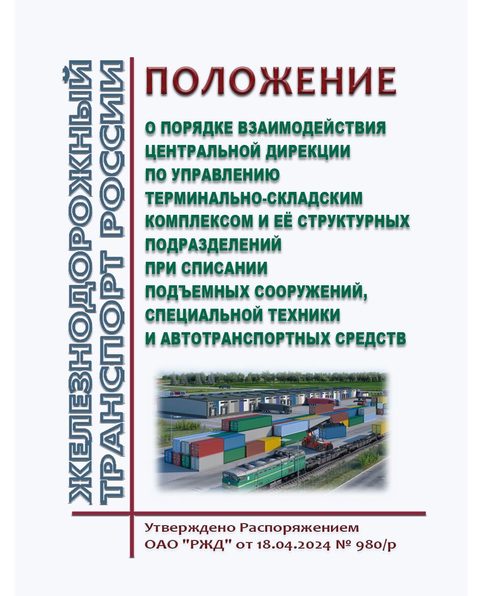 Положение определяет порядок взаимодействия Центральной дирекции по управлению терминально-складским комплексом и её структурных подразделений при списании подъемных сооружений, специальной техники и автотранспортных средств и устанавливает комплекс мероприятий