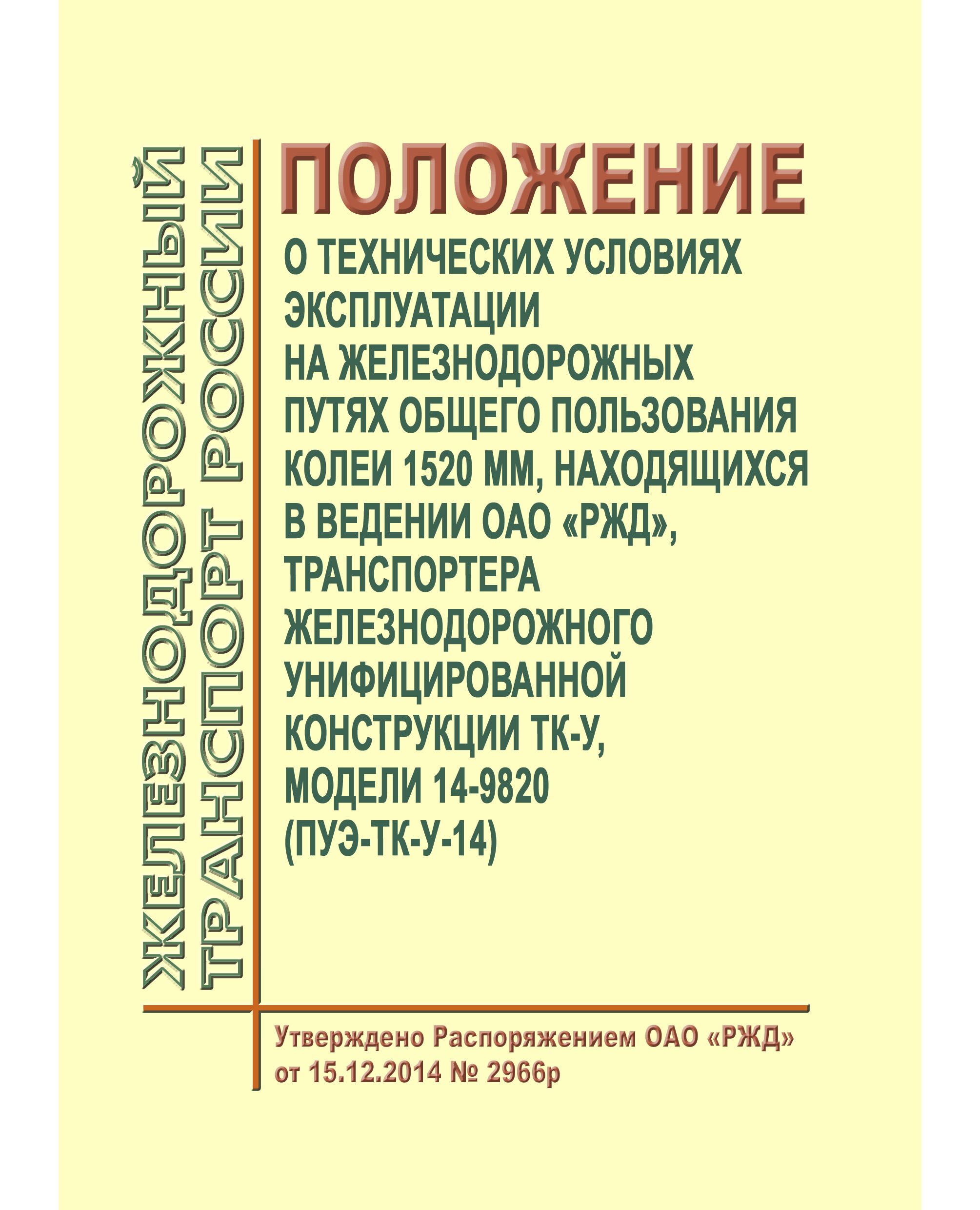 Положение о технических условиях эксплуатации на железнодорожных путях общего пользования колеи 1520 мм, находящихся в ведении ОАО "РЖД", железнодорожного транспортера унифицированного ТК-У, модель 14-9820, устанавливает правила безопасной эксплуатации ТК-У.