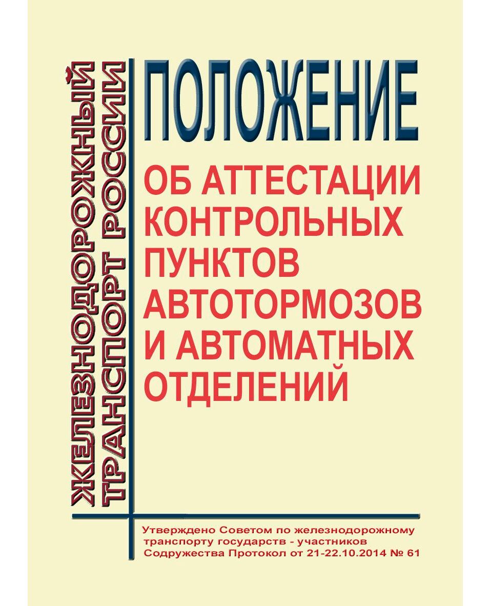 Настоящее Положение разработано для руководства при проведении аттестации контрольных пунктов автотормозов (АКП) и автоматных отделений (АО) для проверки и ремонта автотормозного оборудования вагонов, обращающихся в международном сообщении.