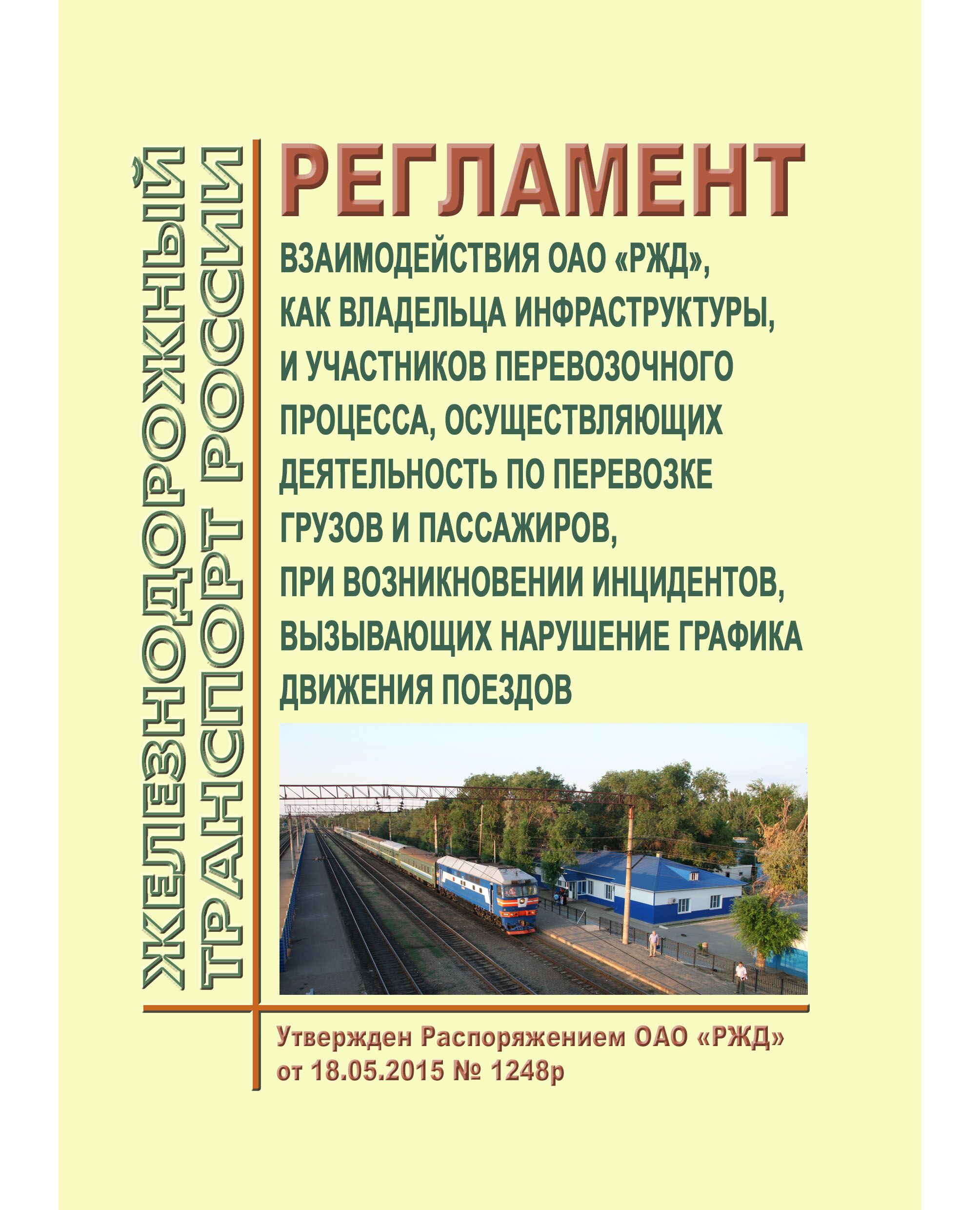 Регламент устанавливает порядок взаимодействия ОАО "РЖД", как владельца инфраструктуры, и участников перевозочного процесса, осуществляющих деятельность по перевозке грузов и пассажиров при возникновении инцидентов, вызывающих нарушения графика движения поездов.