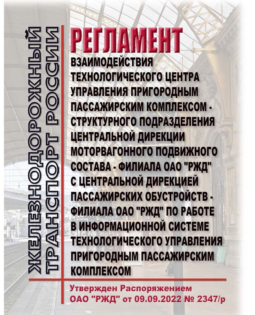 Принят вместо Регламента взаимодействия Технологического центра управления пригородным пассажирским комплексом - структурного подразделения Центральной дирекции моторвагонного подвижного состава - филиала ОАО "РЖД" с Центральной дирекцией пассажирских обустройств - филиала ОАО "РЖД", от 04 апреля 2014 г.