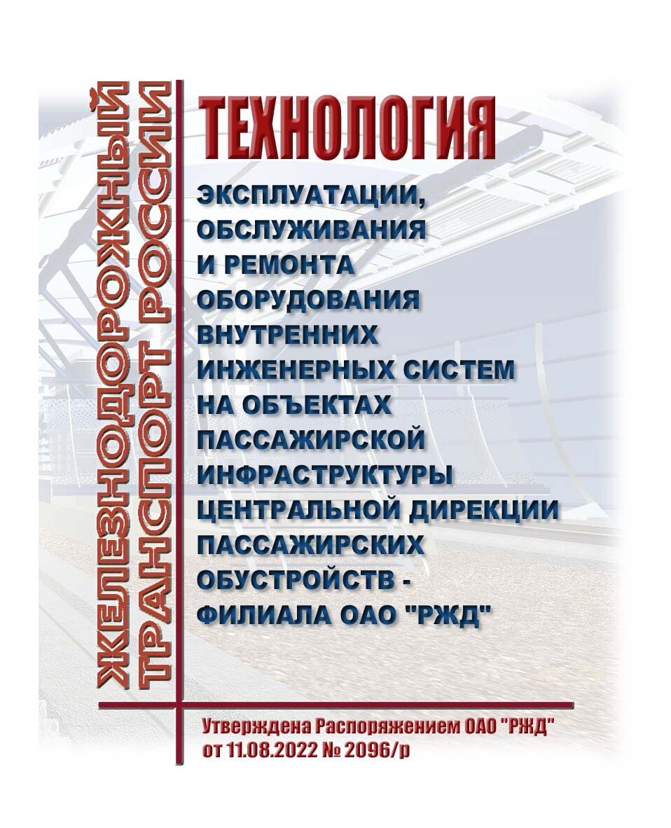 Настоящая технология эксплуатации, обслуживания и ремонта оборудования внутренних инженерных систем на объектах пассажирской инфраструктуры Центральной дирекции пассажирских обустройств - филиала ОАО "РЖД" определяет порядок эксплуатации, технического обслуживания и ремонта оборудования внутренних инженерных систем.