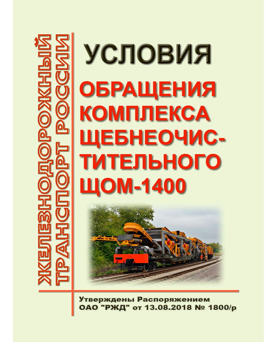 Условия обращения комплекса щебнеочистительного ЩОМ-1400. Утверждены Распоряжением ОАО "РЖД" от 13.08.2018 № 1800/р