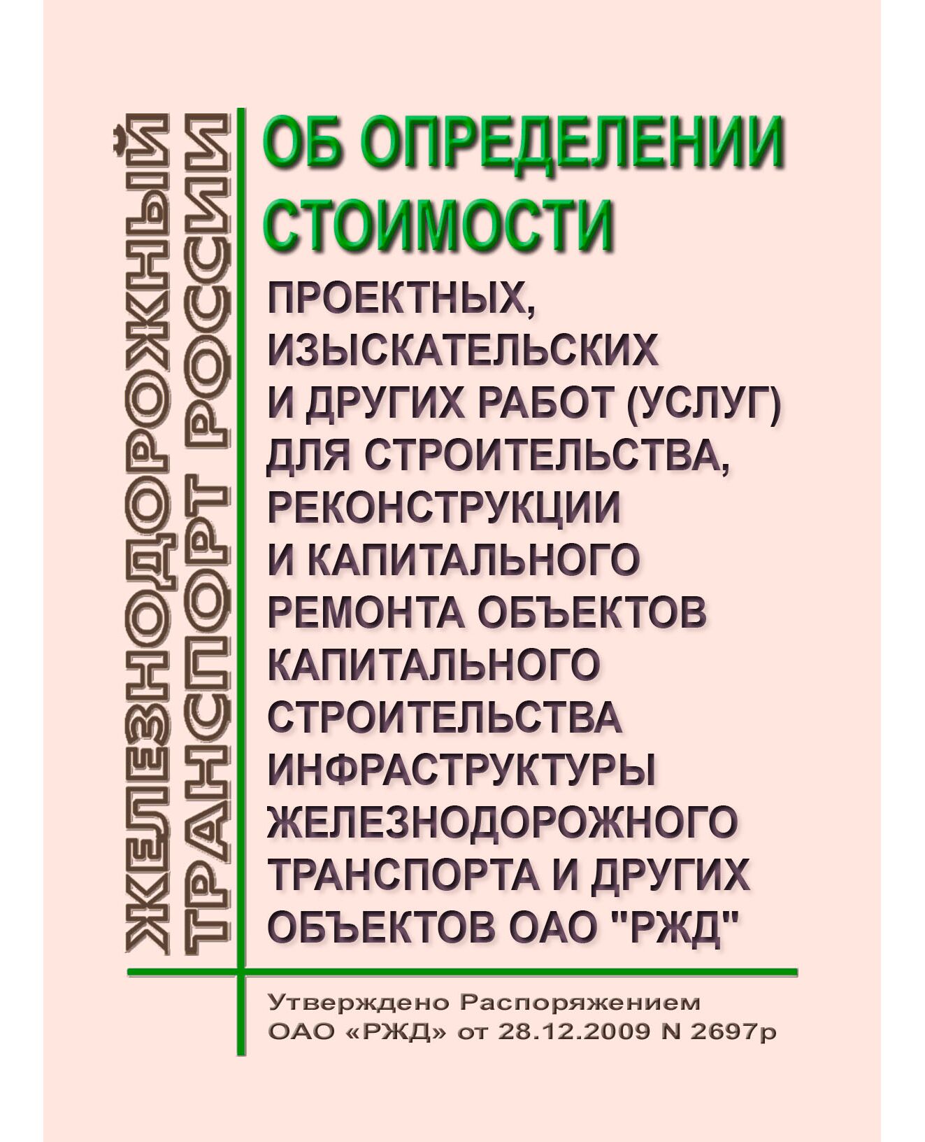 Порядок определения стоимости проектных, изыскательских и других работ (услуг) для строительства, реконструкции и капитального ремонта объектов капитального строительства инфраструктуры железнодорожного транспорта и других объектов ОАО "РЖД";