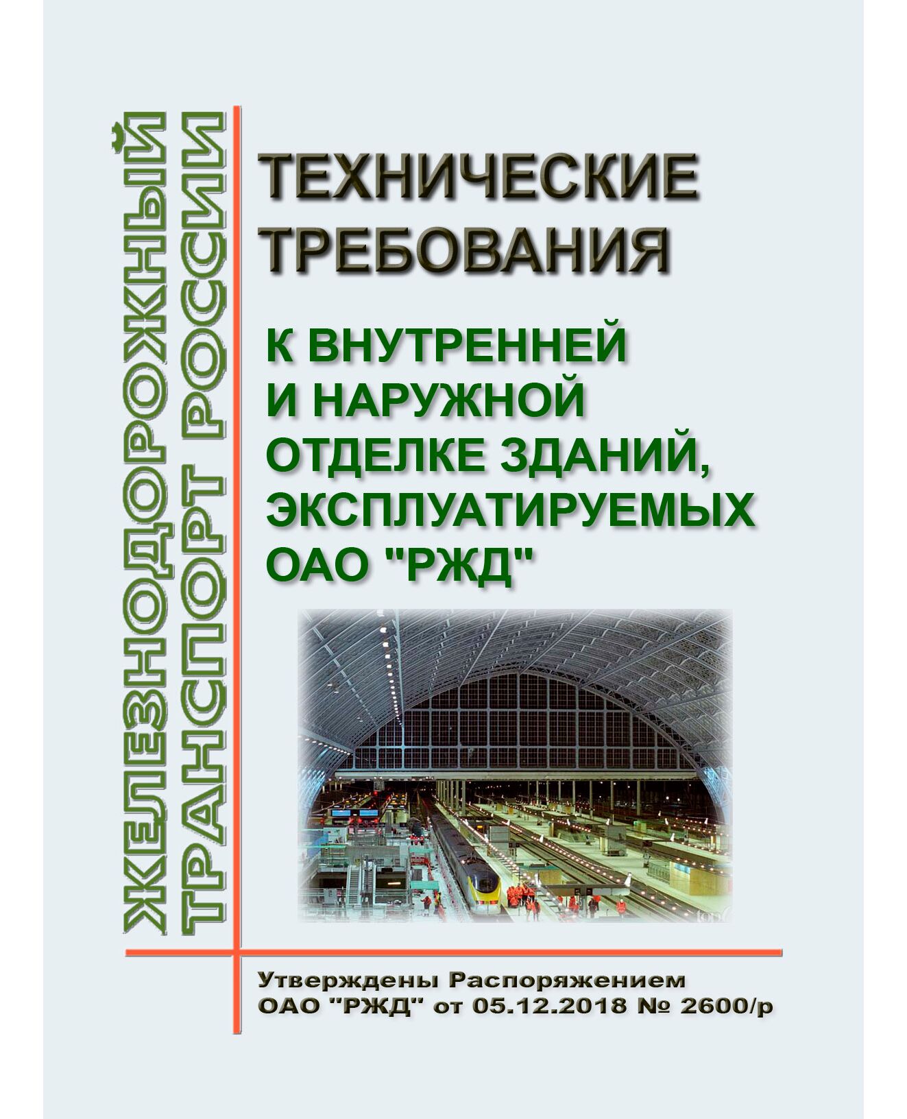 Технические требования к внутренней и наружной отделке зданий, эксплуатируемых ОАО "РЖД". Утверждены Распоряжением ОАО "РЖД" от 05.12.2018 № 2600/р
