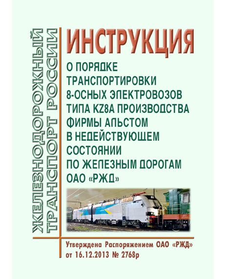 Настоящая Инструкция регламентирует порядок подготовки и проведения транспортировки по железным дорогам ОАО "РЖД" партии электровозов типа KZ8A производства компании "Альстом" на железные дороги Республики Казахстан в соответствии с согласованным графиком поставки электровозов.