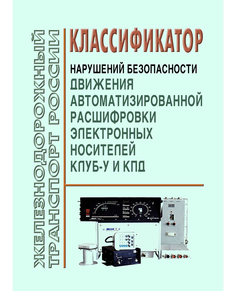 Классификатор нарушений безопасности движения автоматизированной расшифровки электронных носителей КЛУБ-У и КПД определяет перечень типовых ситуаций, выявляемых при расшифровке параметров движения локомотивов и перечень стандартных формулировок для записи нарушений.
