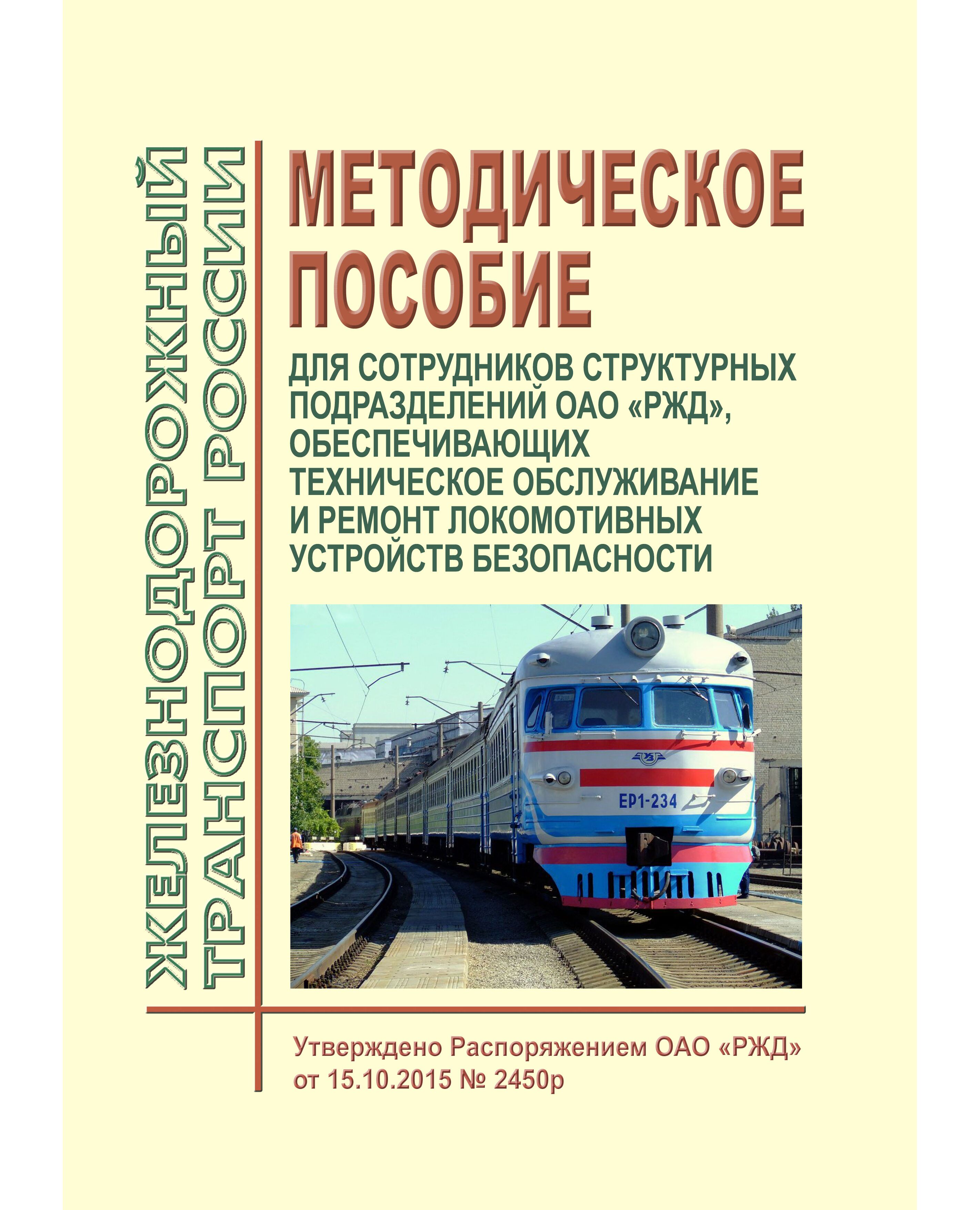 Методическое пособие составлено на основании и с учетом действующих нормативных и технических документов и предназначены для применения предприятиями ОАО "РЖД" при организации и осуществлении технического обслуживания и ремонта, а также при разработке местных организационных и технологических документов по техническому обслуживанию и ремонту локомотивных устройств безопасности.