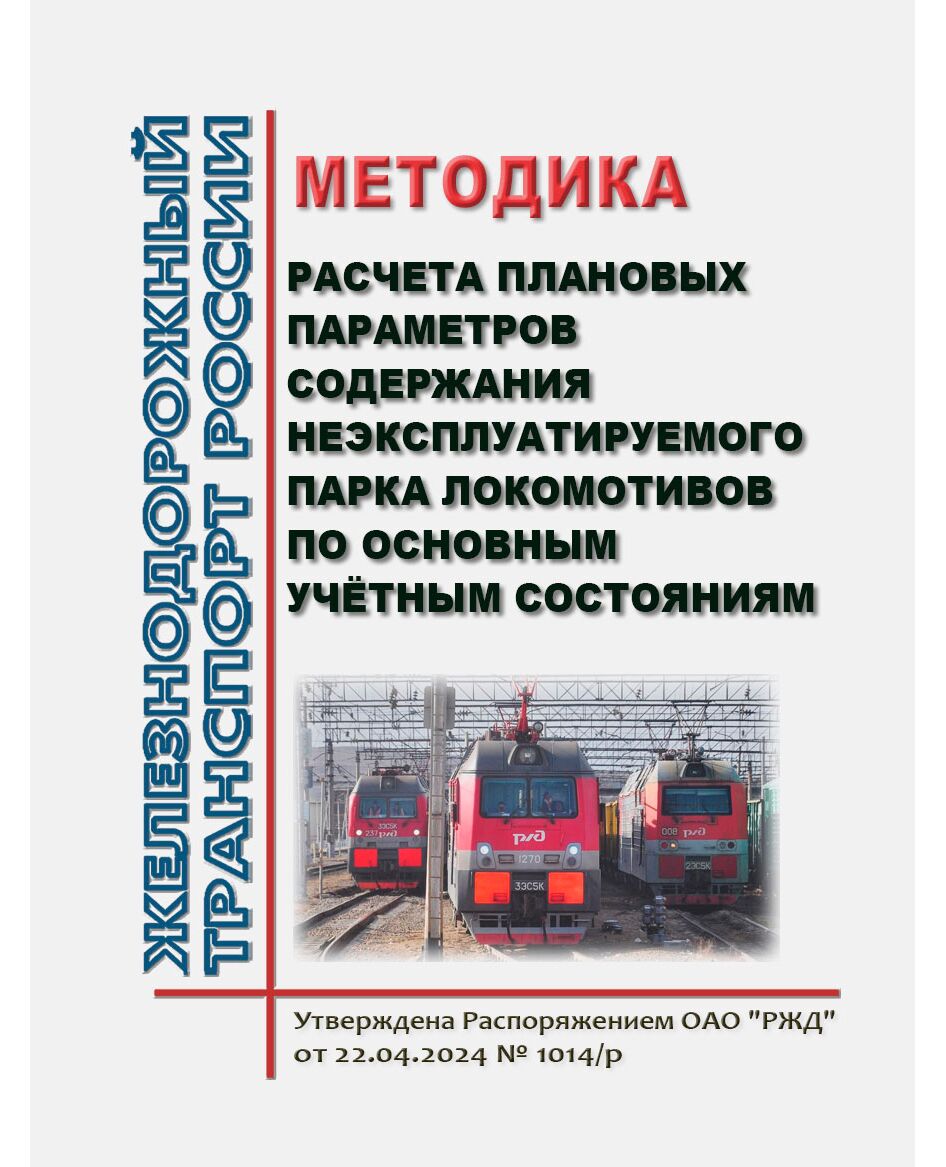 Настоящая методика устанавливает порядок расчета планового значения неэксплуатируемого парка локомотивов по основным учётным состояниям в текущем (планируемом) году и на долгосрочную перспективу.