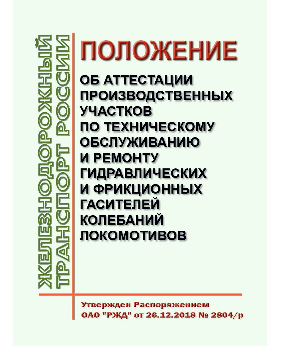 Распоряжение ОАО "РЖД" от 26.12.2018 № 2804/р признает утратившим силу действие Положения об аттестации производственных участков по техническому обслуживанию и ремонту гидравлических и фрикционных гасителей колебаний локомотивов от 22.04.2014 № ЦТР-105/р.
