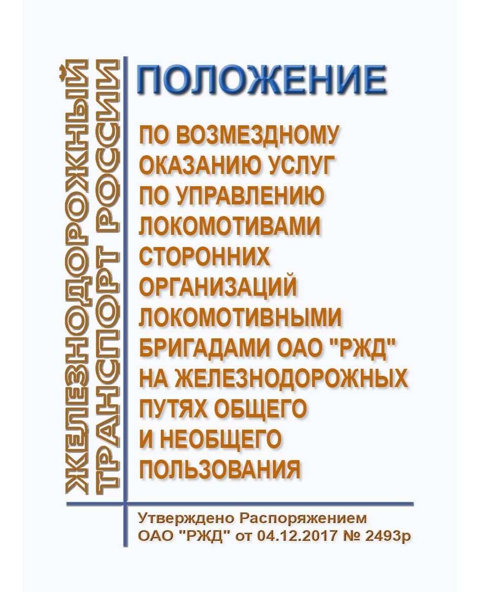 Положение по возмездному оказанию услуг по управлению локомотивами сторонних организаций локомотивными бригадами ОАО "РЖД" на железнодорожных путях общего и необщего пользования. Утверждено Распоряжением ОАО "РЖД" от 04.12.2017 № 2493р