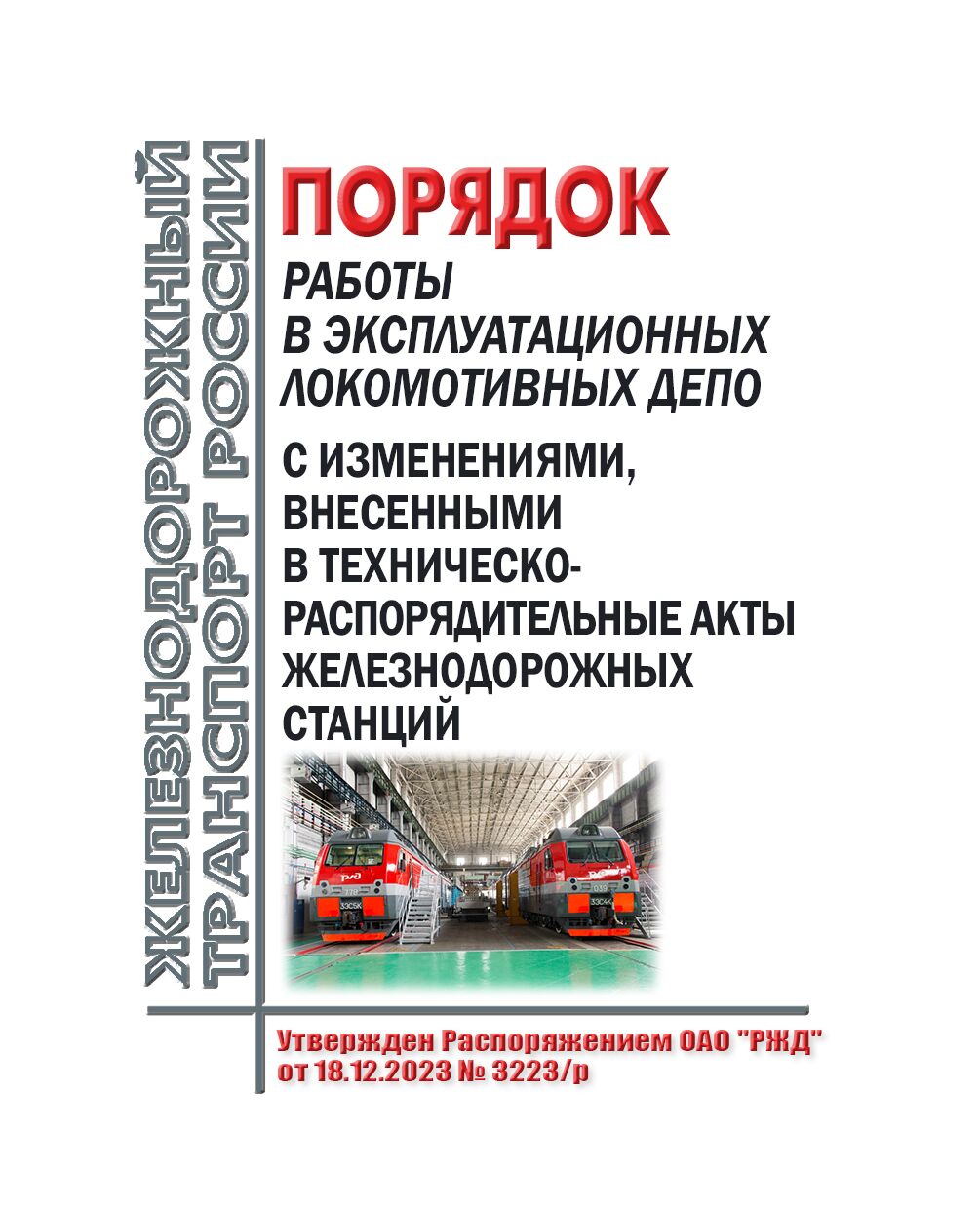 Порядок работы в эксплуатационных локомотивных депо с изменениями, внесенными в техническо-распорядительные акты железнодорожных станций. Утвержден Распоряжением ОАО "РЖД" от 18.12.2023 № 3223/р