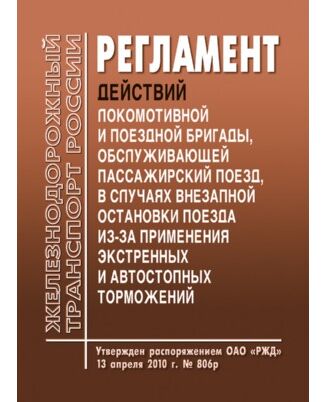 Регламент действий локомотивной и поездной бригады, обслуживающей поезд, устанавливает порядок и последовательность действий работников в случаях внезапной остановки пассажирского поезда из-за применения экстренных и автостопных торможений.