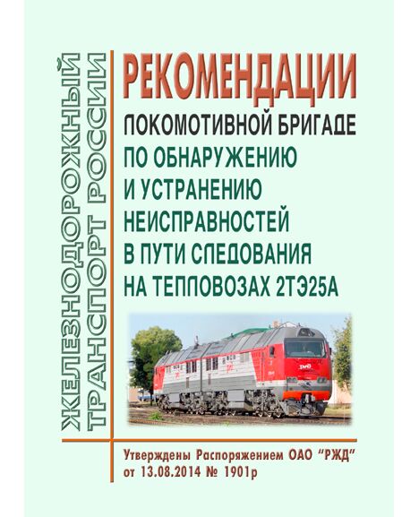Рекомендации локомотивной бригаде по обнаружению и устранению неисправностей в пути следования на тепловозах 2ТЭ25А. Утверждены Распоряжением ОАО "РЖД" от 13.08.2014 № 1901р