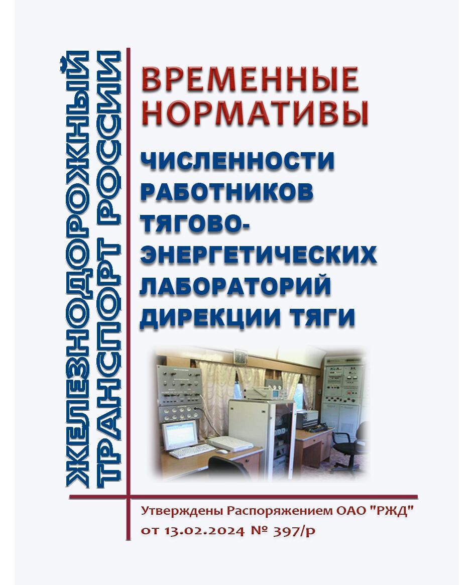 Временные нормативы численности работников тягово-энергетических лабораторий Дирекции тяги. Утверждены Распоряжением ОАО "РЖД" от 13.02.2024 № 397/р