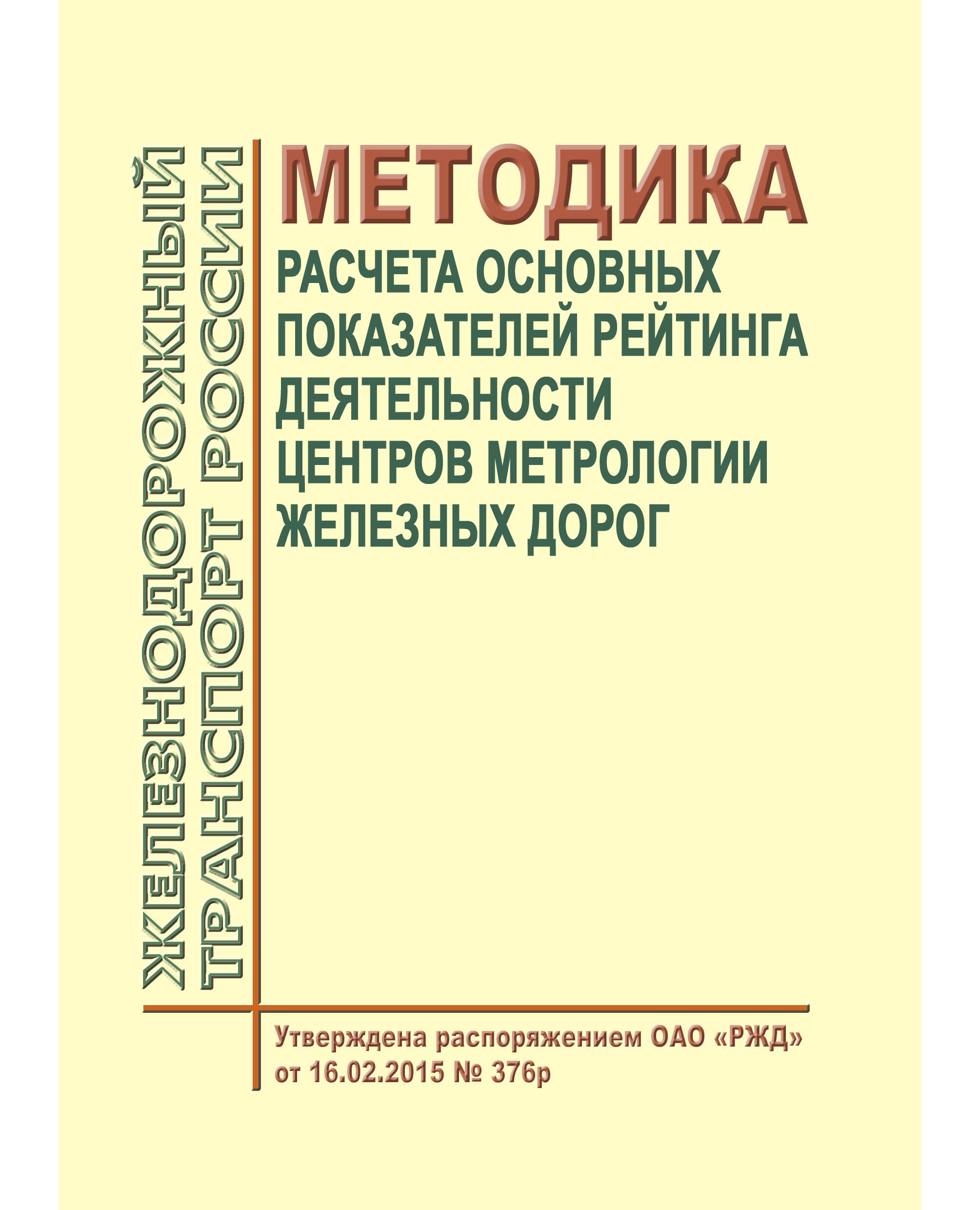 Настоящая методика расчета основных показателей рейтинга деятельности центров метрологии железных дорог предназначена для оценки деятельности центров метрологии железных дорог.