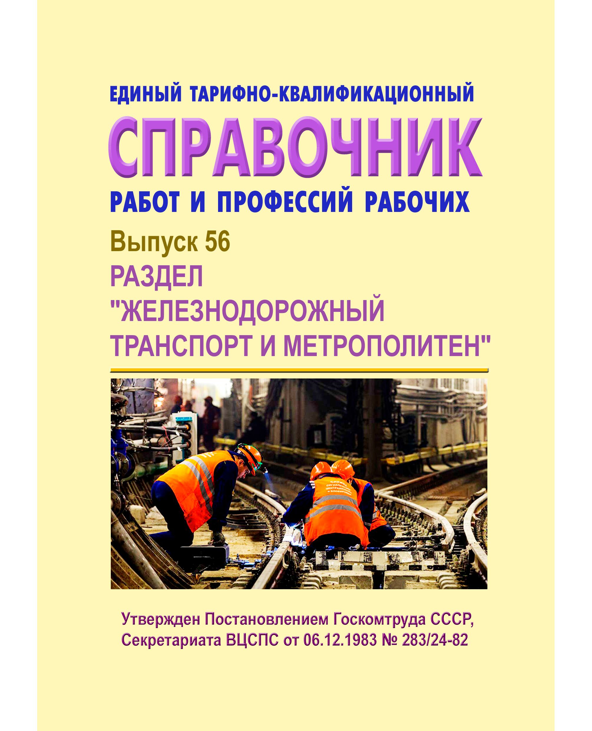 Единый тарифно-квалификационный справочник работ и профессий рабочих. Выпуск 56. Раздел "Железнодорожный транспорт и метрополитен". Утвержден Постановлением Госкомтруда СССР, Секретариата ВЦСПС от 06.12.1983 № 283/24-82 в редакции Приказа Минздравсоцразвития РФ от 11.11.2008 № 641