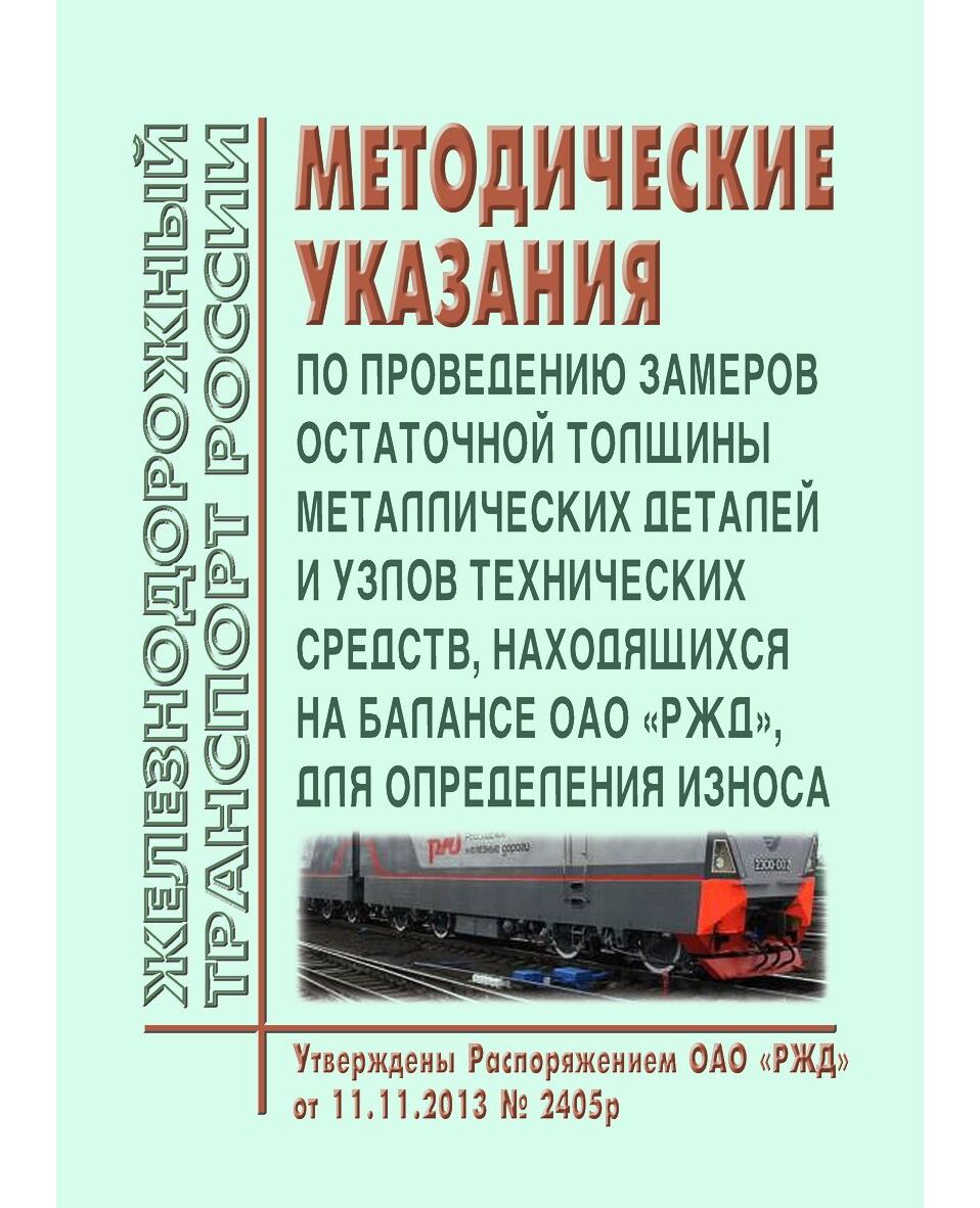 Методические указания определяют основные требования к проведению замеров толщин деталей и узлов при проведении комиссионного обследования технических средств, находящихся на балансе ОАО "РЖД", порядок выполнения замеров, расчета коэффициента износа ТС на основе полученных данных, а также содержат образцы маршрутных карт с указанием мест (точек) замеров и примеры оформления результатов.