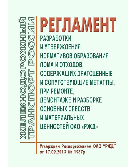 Регламент разработки и утверждения нормативов образования лома - и отходов, содержащих драгоценные и сопутствующие металлы, при ремонте, демонтаже и разборке основных средств и материальных ценностей ОАО "РЖД".