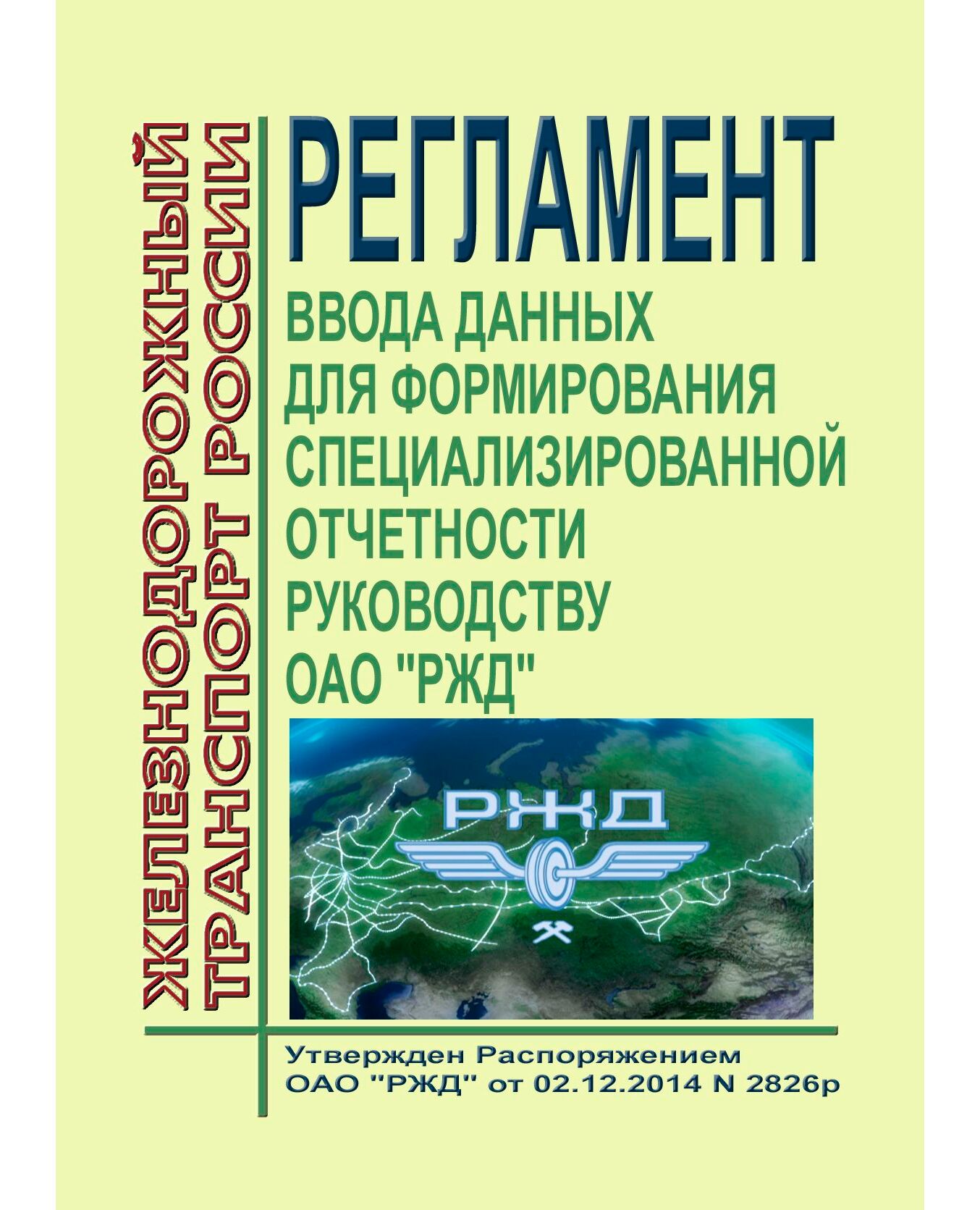 Регламент ввода данных для формирования специализированной отчетности руководству ОАО "РЖД". Утвержден Распоряжением ОАО "РЖД" от 02.12.2014 № 2826р