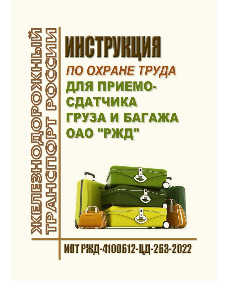 Настоящая Инструкция разработана в соответствии с Трудовым кодексом Российской Федерации, Правилами по охране труда при погрузочно-разгрузочных работах и размещении грузов, Правилами по охране труда при погрузочно-разгрузочных работах и коммерческих операциях в сфере грузовых перевозок, Правилами по безопасному нахождению работников ОАО "РЖД" на железнодорожных путях, Правилами по охране труда при работе на высоте и устанавливает основные требования охраны труда при выполнении должностных обязанностей приемосдатчиком груза и багажа