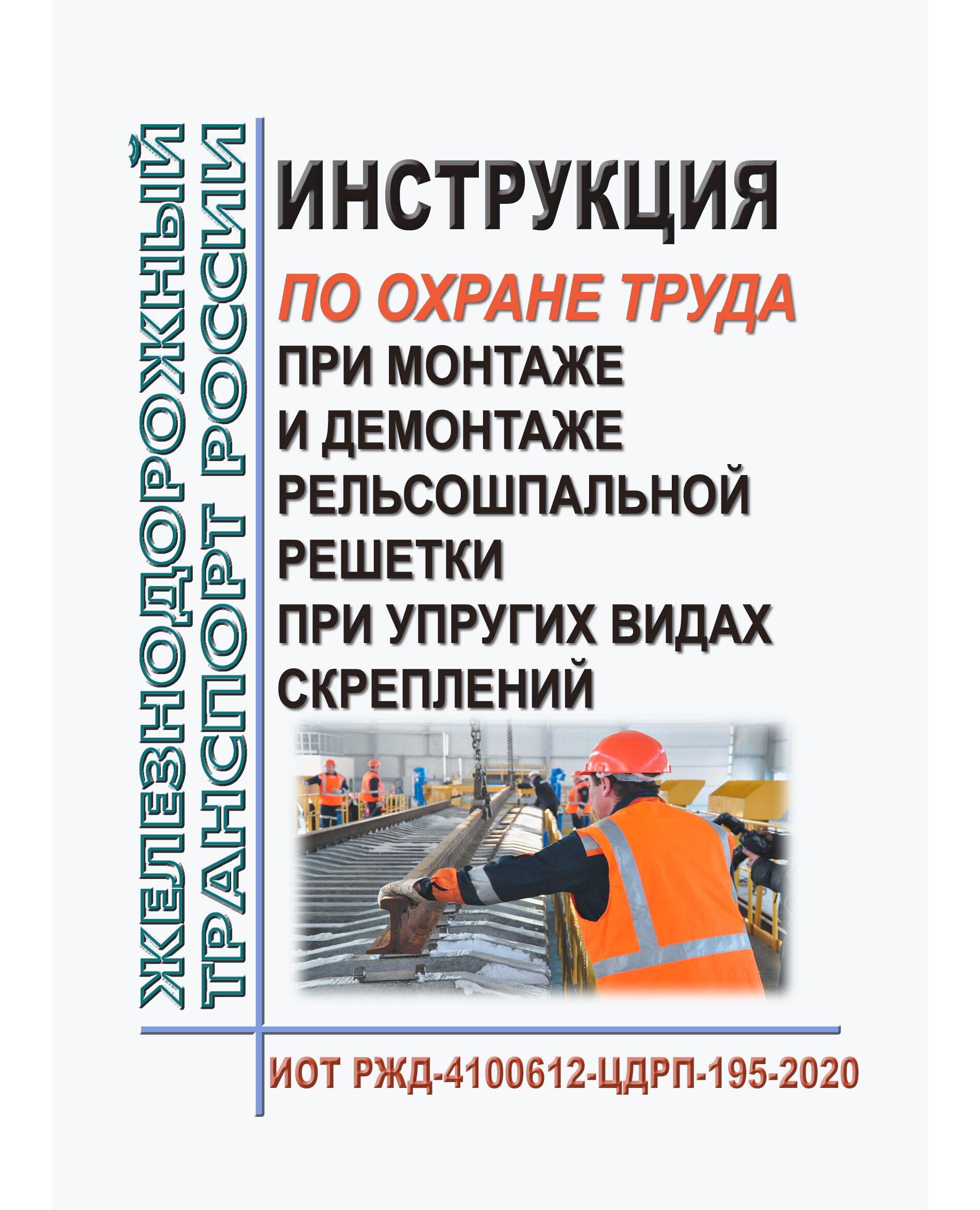 Настоящая Инструкция устанавливает основные требования безопасности для монтеров пути, бригадиров по текущему содержанию и ремонту пути, дорожных мастеров, машинистов кранов, монтеров пути, выполняющих обязанности стропальщиков при монтаже и демонтаже рельсошпальной решетки при упругих видах скреплений.