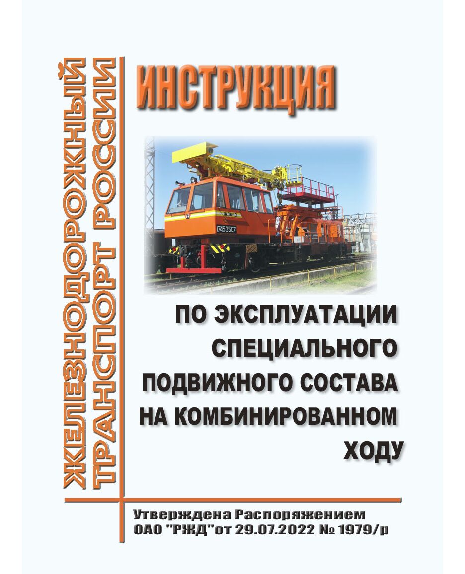 Инструкция определяет основные положения и требования к организации работы машиниста (водителя) специального подвижного состава на комбинированном ходу (СПК) на инфраструктуре ОАО "РЖД", требования к СПК и его допуску на инфраструктуру ОАО "РЖД",
