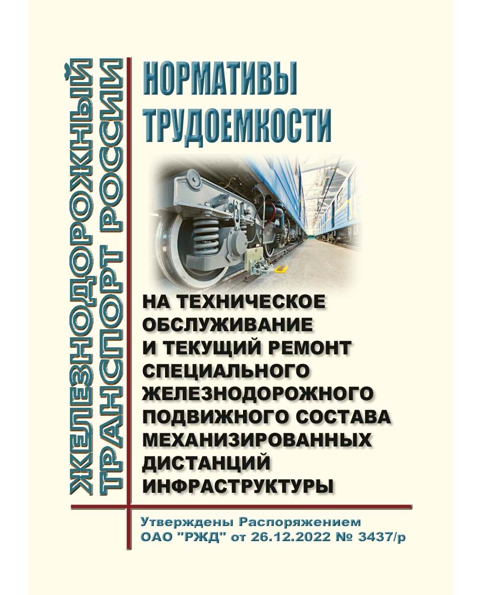 Нормативы трудоемкости предназначены для определения и обоснования нормативной численности рабочих, занятых на техническом обслуживании и текущем ремонте первого объема щебнеочистительных машин СЧ-600, СЧ-601, РМ-80, РМ-95, RM-2002 и RM-2012, машины выправочно-подбивочно-рихтовочной непрерывного действия Дуоматик 09-32, машины-автомат выправочно-подбивочно-рихтовочной ПМА-1 и ПМА-1М, машины Динамик-подбивочный экспресс 09-3Х, машины выправочно-подбивочно-рихтовочной для стрелочных переводов Унимат 08-275, машины для закрепления и смазки закладных болтов непрерывного действия ПМГ, динамического стабилизатора пути ДСП, снегоочистителя двухпутного СДП и СДП-М, поезда снегоуборочного СМ-2 и СМ-7Н, поезда снегоуборочного самоходного ПСС-1К, планировщика балласта ПБ-01, распределителя балласта РБ, состава засорителя СЗ-160-4 и СЗ-240-6,