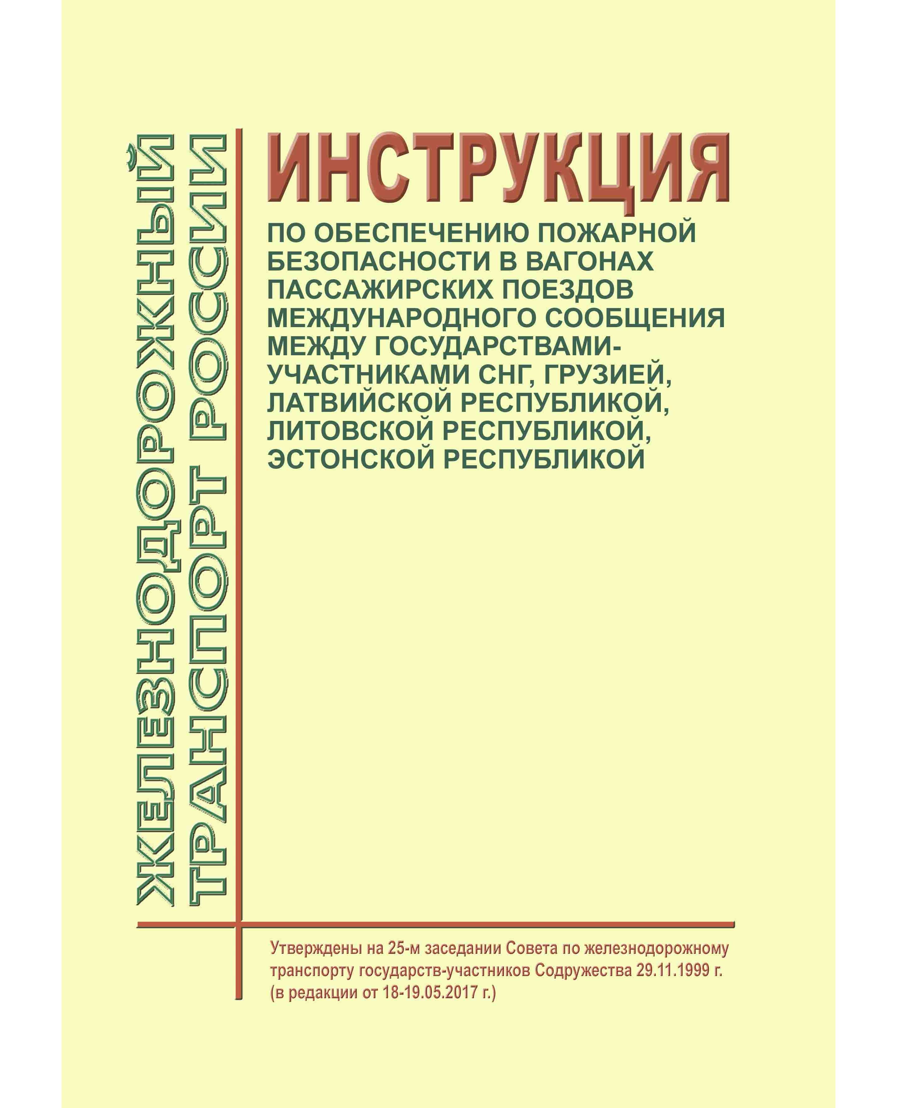 Инструкция по обеспечению пожарной безопасности распространяется на пассажирские вагоны локомотивной тяги, предназначена для обеспечения пожарной безопасности в вагонах, которые включаются в составы пассажирских поездов международного сообщения железных дорог государств-участников СНГ, Грузии, Латвийской Республики, Литовской Республики, Эстонской Республики.