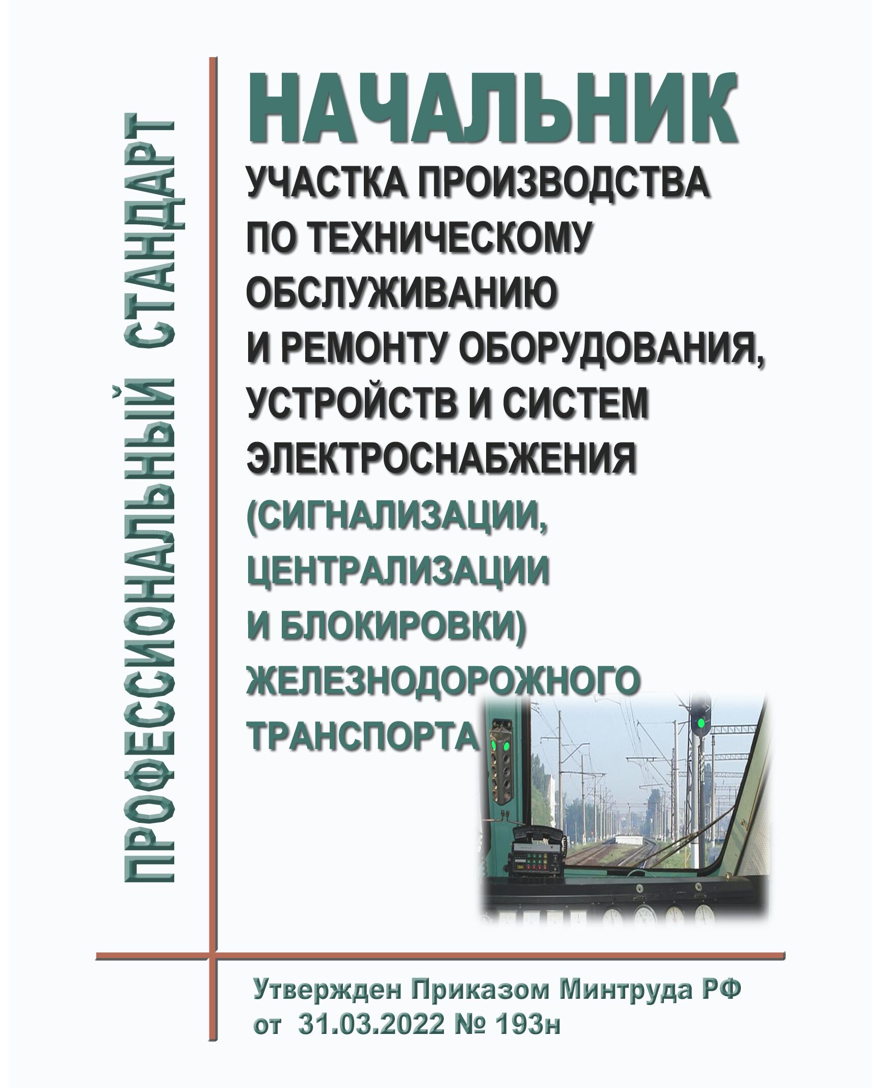 Принят вместо Профессионального стандарта "Начальник участка производства по техническому обслуживанию и ремонту оборудования, устройств и систем электроснабжения (сигнализации, централизации и блокировки) железнодорожного транспорта", утв. Приказом Минтруда России от 31.03.2022 № 193н