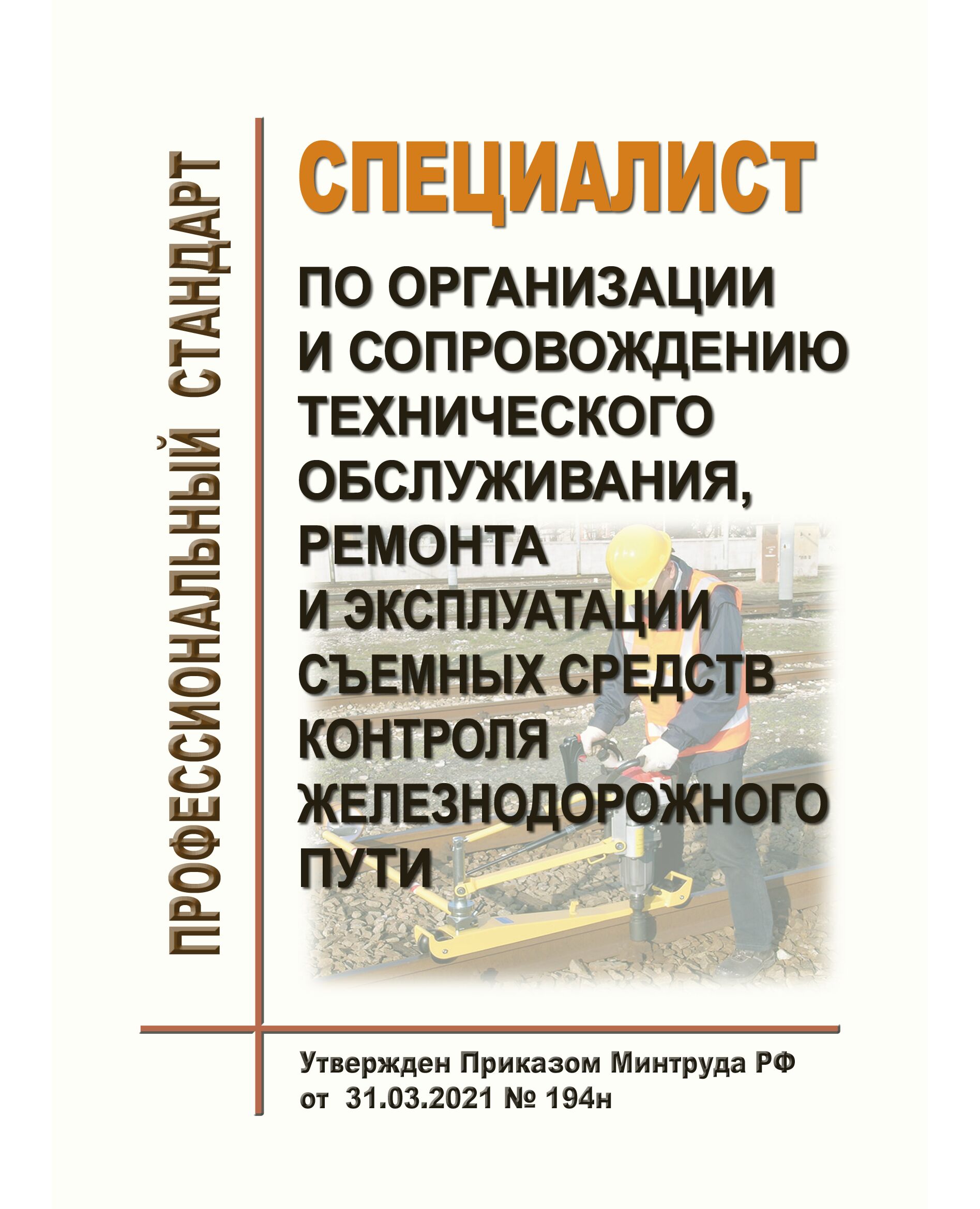 Профессиональный стандарт "Специалист по организации и сопровождению технического обслуживания, ремонта и эксплуатации съемных средств контроля железнодорожного пути". Утвержден Приказом Минтруда России от 31.03.2021 № 194н