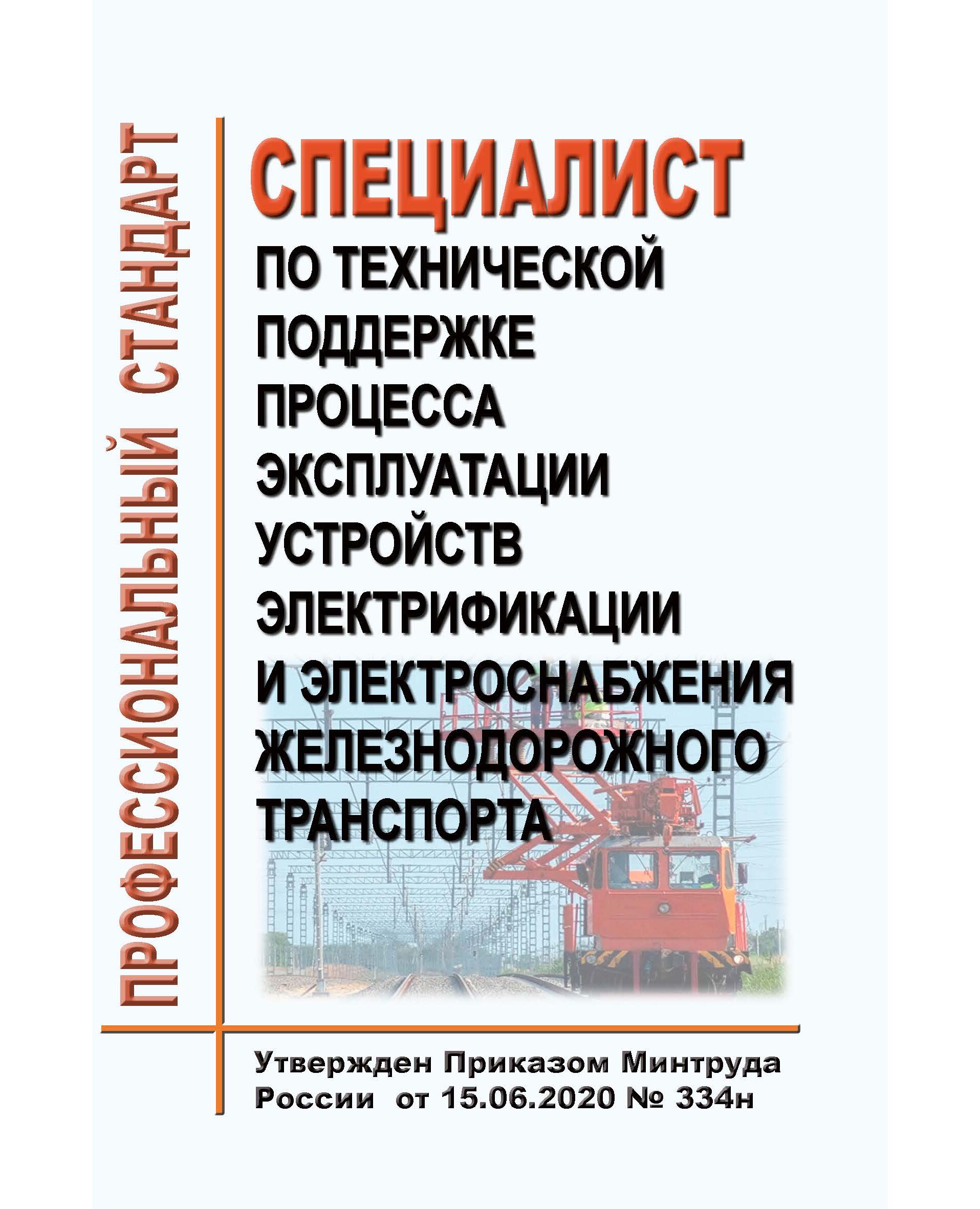 Профессиональный стандарт "Специалист по технической поддержке процесса эксплуатации устройств электрификации и электроснабжения железнодорожного транспорта". Утвержден Приказом Минтруда России от 15.06.2020 № 334н
