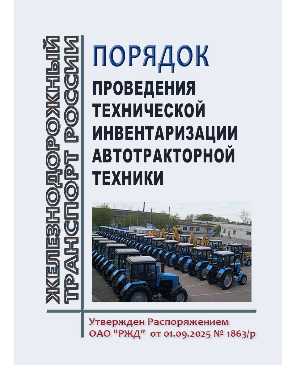 Порядок определяет последовательность действий филиалов и структурных подразделений ОАО "РЖД", являющихся балансодержателями автотракторной техники, при организации, проведении и подведении итогов технической инвентаризации автотракторной техники.