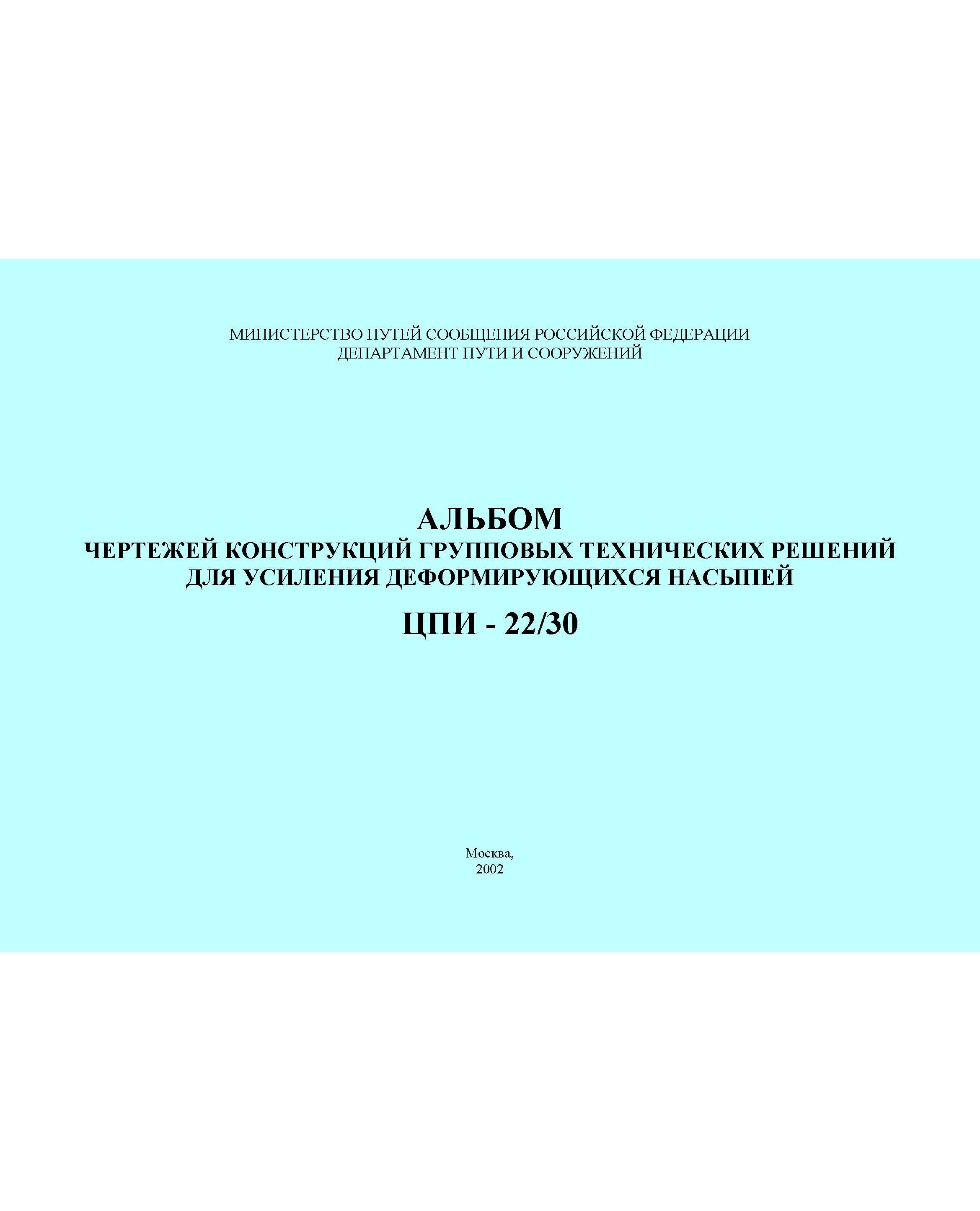 Альбом чертежей конструкций групповых технических решений для усиления деформирующихся насыпей. Утвержден Департаментом пути и сооружений МПС РФ 28.12.2000, ЦПИ № 22/30