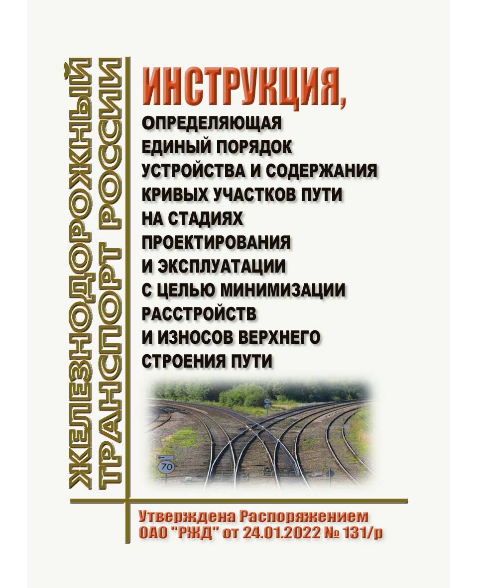 Целью Инструкции является определение и установление единого порядка устройства кривых участков пути с учетом требований Руководства по определению возвышения наружного рельса в кривых на основе двухуровневой системы скоростей, утвержденного распоряжением ОАО "РЖД" от 20 декабря 2021 г. N 2897/р,