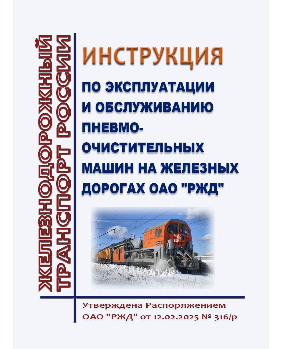 Инструкция определяет требования к эксплуатации и обслуживанию пневмоочистительных машин на железных дорогах ОАО "РЖД".